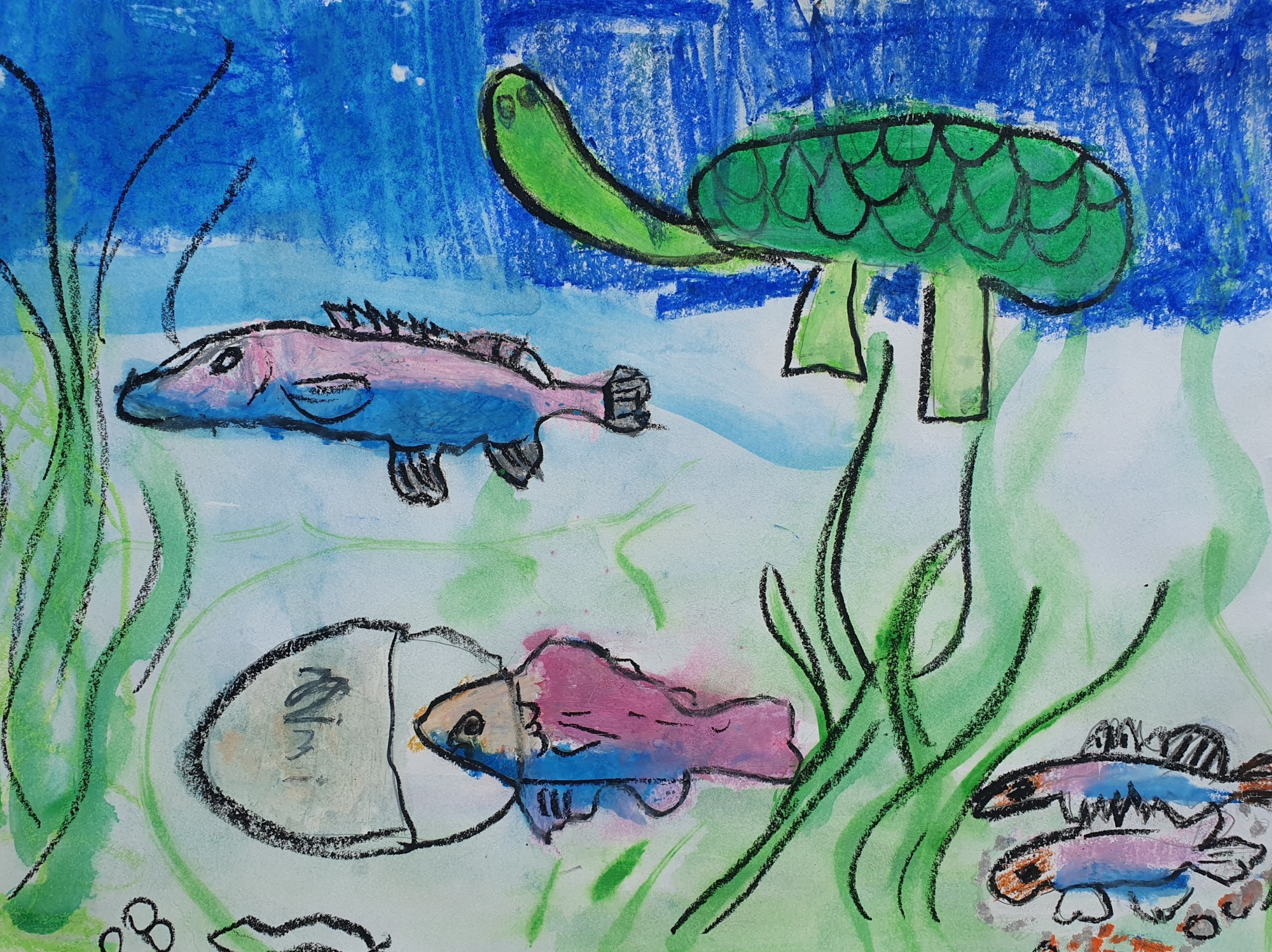 Tad bruņurupucītis palīdzēja novilkt maisiņu.