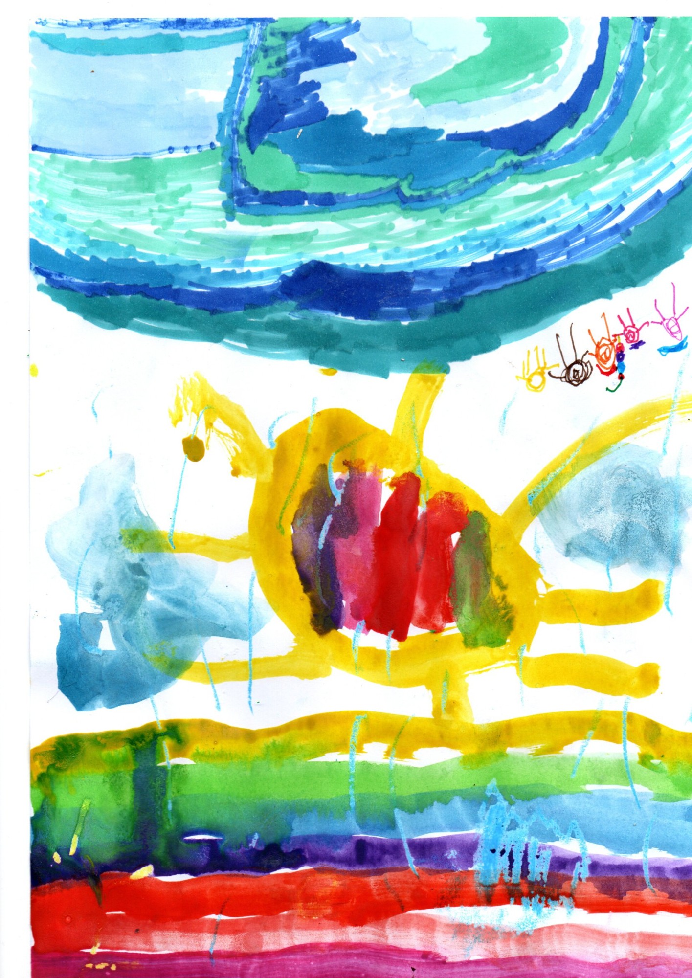 Darbā izmantoti krītiņi, flomasteri, ūdenskrāsas.