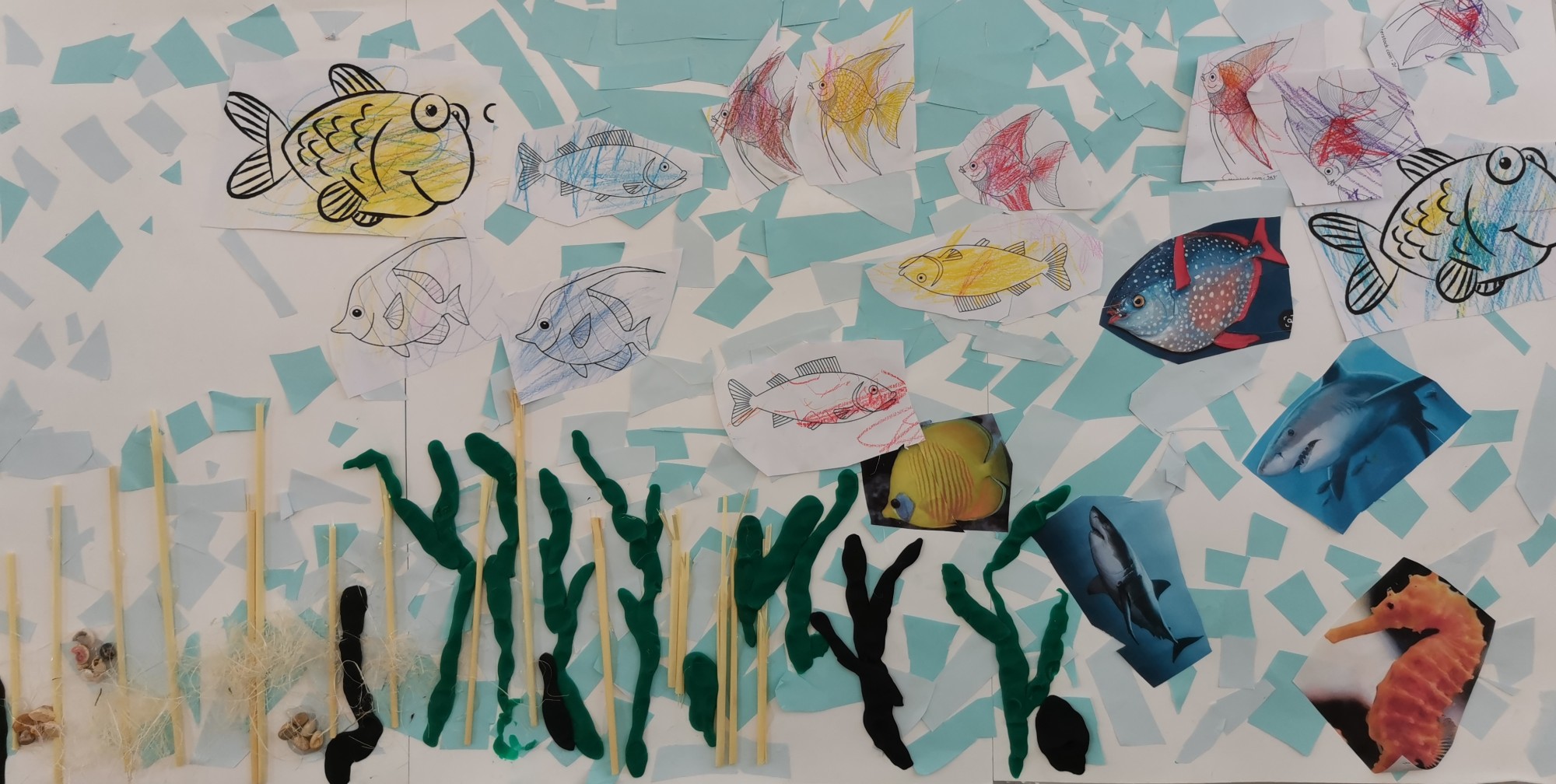 Bērni veidojot zemūdens pasauli, izmanto plastilīnu, salmus, gliemežvākus, akmentiņus, zilas krāsas papīru- visu kopā saliekot, izveido ūdens dzelmi. Pēc tam patstāvīgi ar šķērītēm izgriež zivs trafaretus, gan kopētās, gan pašu krāsotas, pirms tam tiek skatītas grāmatiņas un īsfilmiņas par ūdens dzelmi un zivju krāsu daudzveidību. Visi pirkstiņi tiek čakli nodarbināti, lai taptu brīnišķīgs darbiņš.