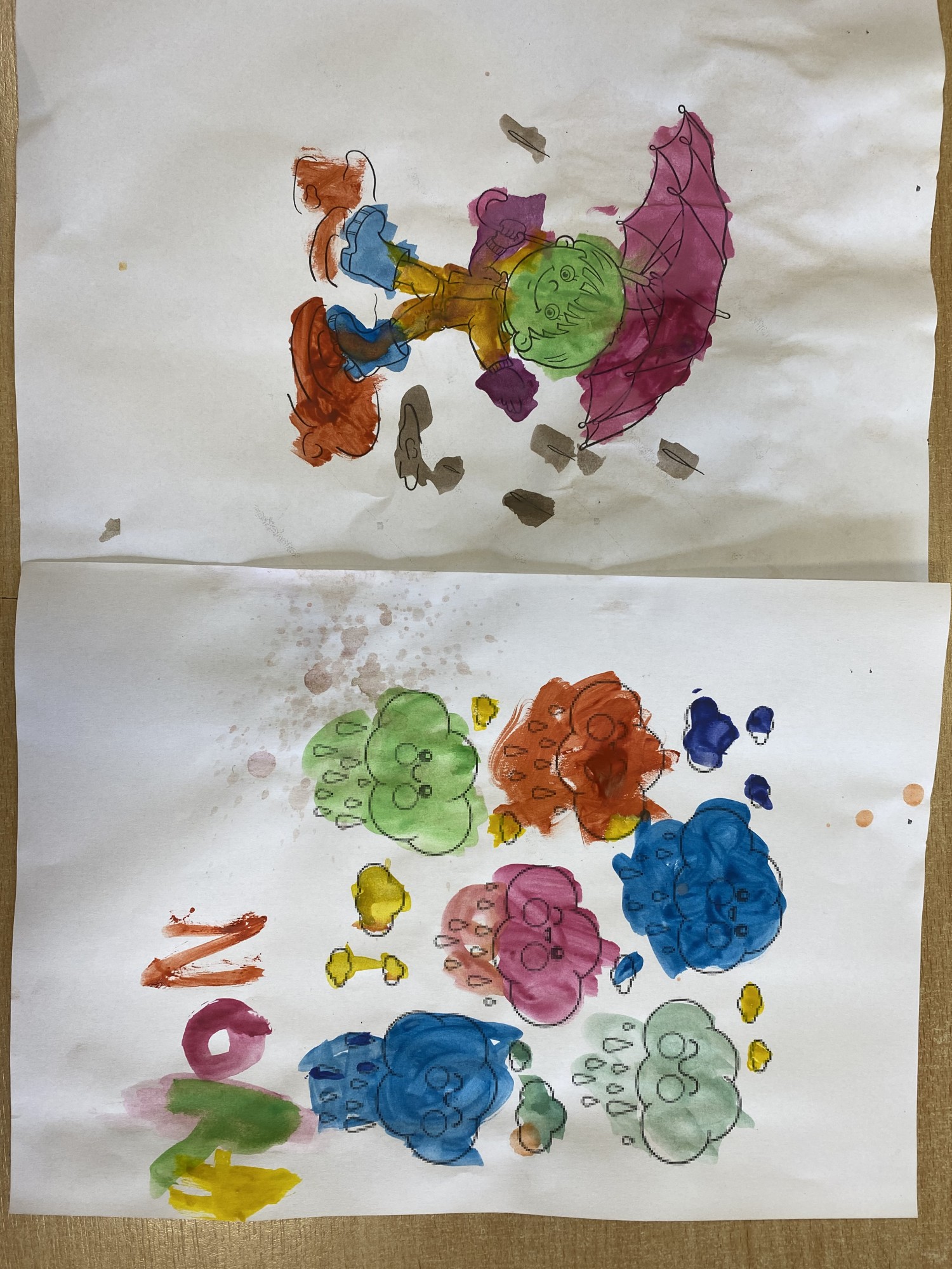 Zīmējuma pamatā ir attēlota dziesma " letutiņu zilu, zaļu, sārtu..."