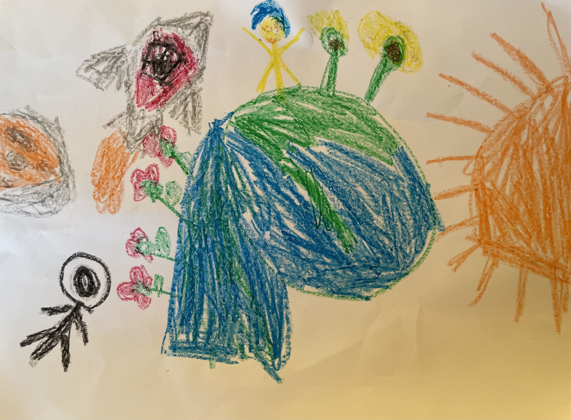 Mēness, Zeme , Saule. No Zemes līst ūdenskritums - spēcīgs un dzīvību uzturošs, tas simbolizē, lai nekad uz Zemes nebeigtos tīrs ūdens, pietiktu gan pašiem, gan uz kosmosu ko aizsūtīt. Pateicoties ūdenim un saules gaismai cilvēki ir priecīgi, zied puķes un aug augi.