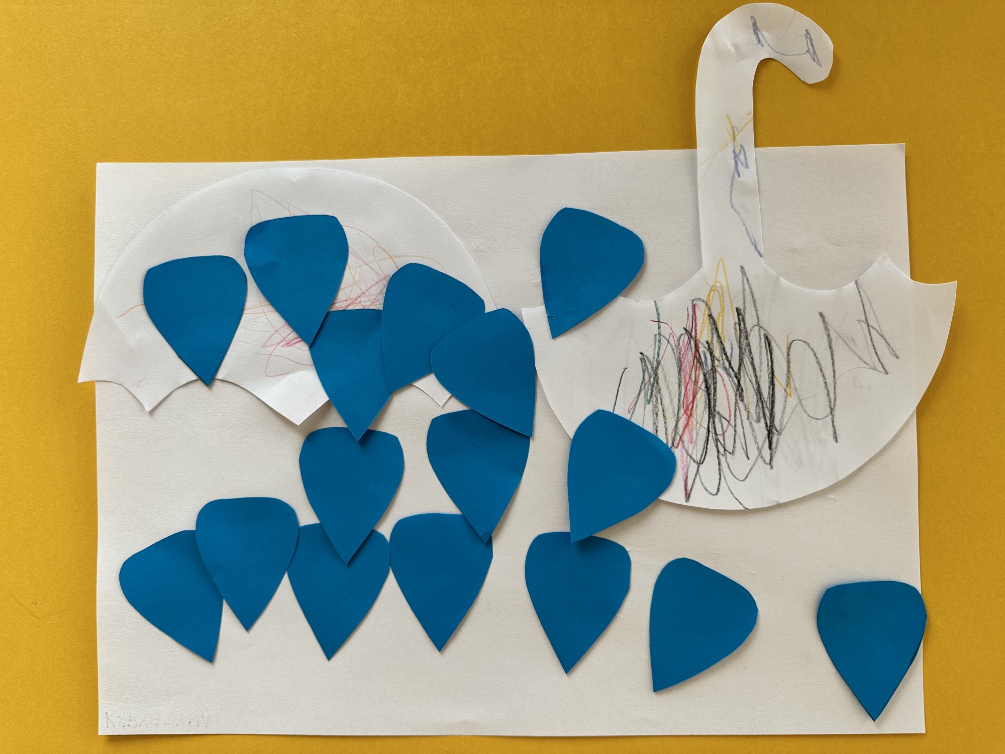Darbā ir redzams, ka arī lietusūdens ir ūdens ieguves veids kuru mēs varam uzkrāt un pēc tam izmantot, bet lai to darītu tas ir jātaupa, tādēļ arī ir divi lietussargi viens uzkrāj ūdeni, bet otrs traucē to uzkrāt.