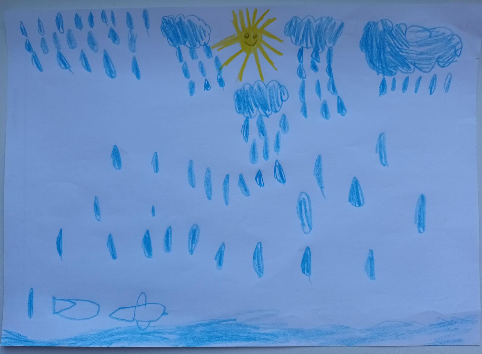 Lietus lāsītes priecīgas,ka nokļuvušas jūrā,jo tur viņas rūpējas par zivīm.
