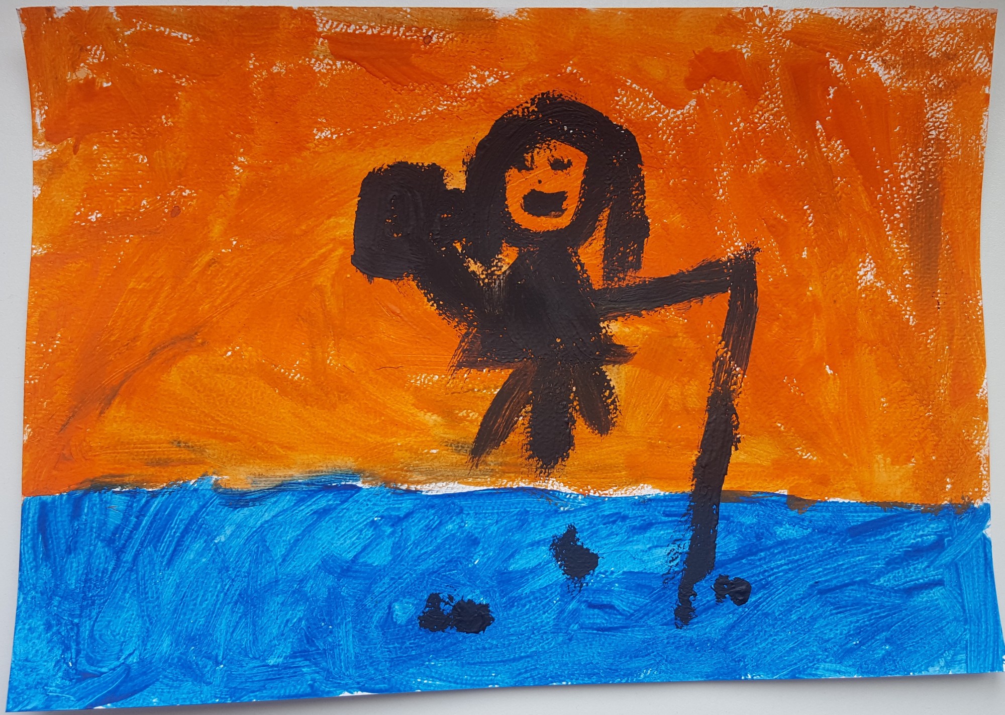 Zīmējumā attēlots makšķernieks, kurš saulrietā makšķerē zivis.