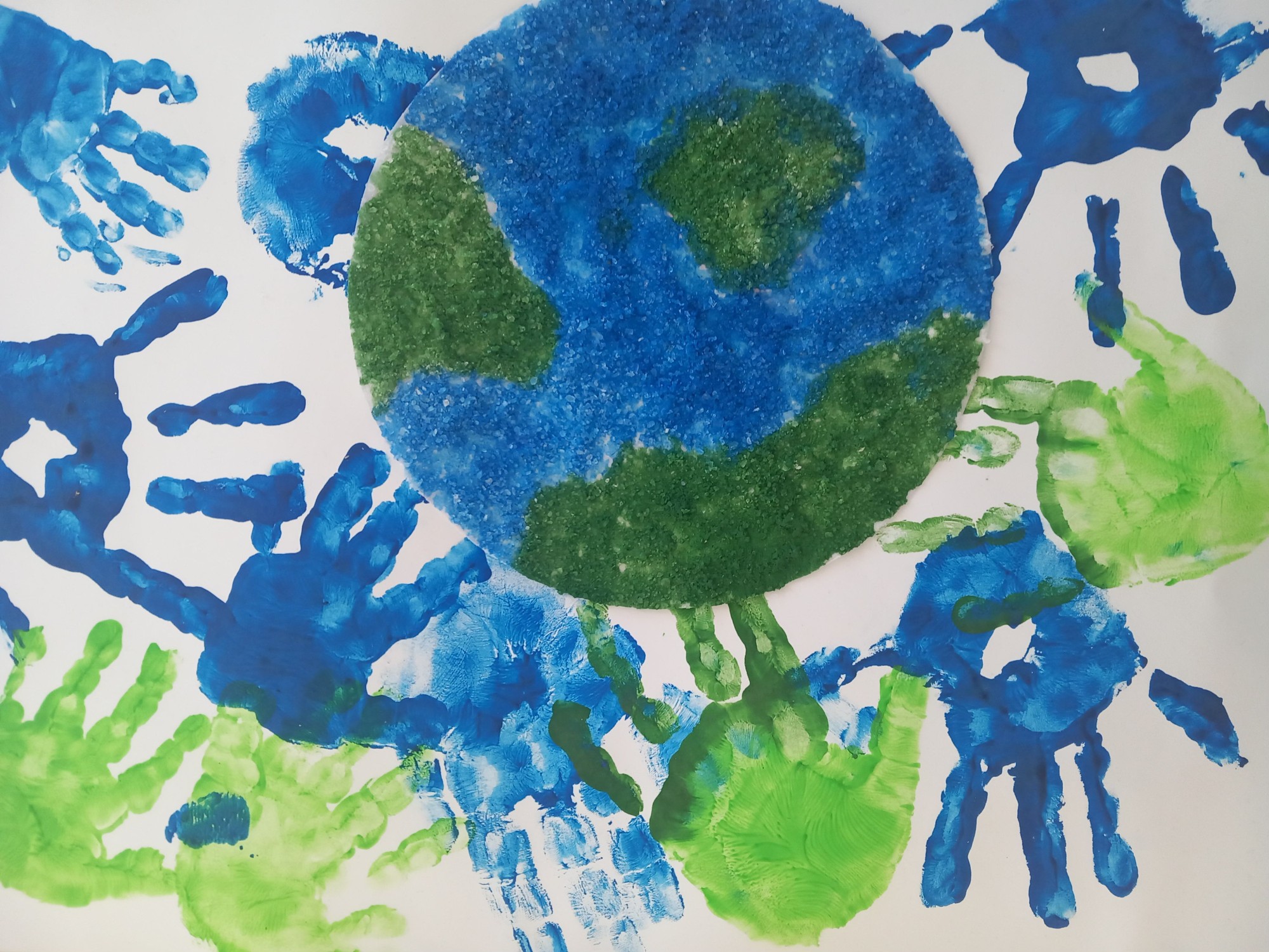 Ar rociņu nospiedumiem bērni apņēmās būt taupīgi un netecināt tik daudz ūdeni mazgājot rokas. Pasaule ir jāsaudzē, lai tā būtu skaista un tīra.
