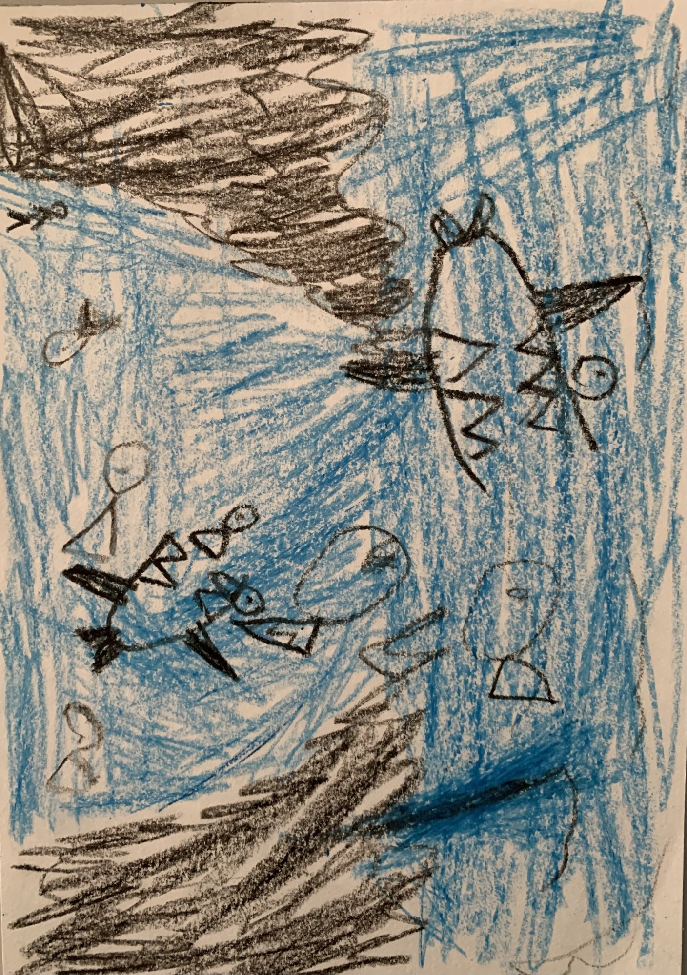 Ūdenī haizivs ēd mazākas zivtiņas.