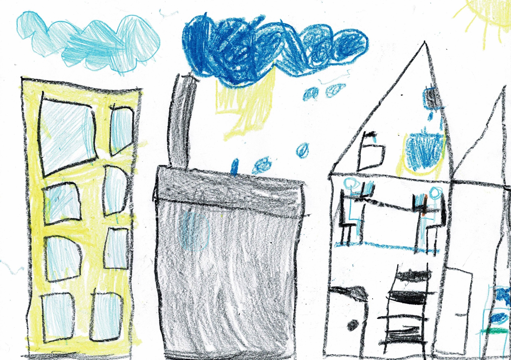 Zīmējumā parādās ūdens nozīme pilsētā.