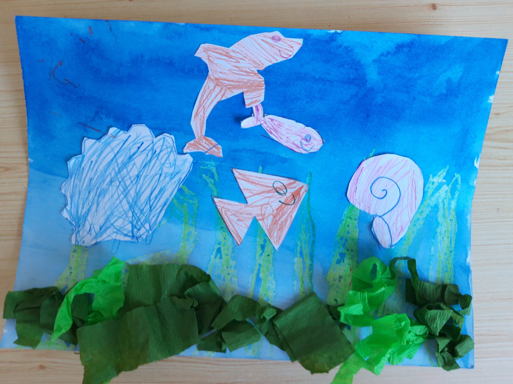 Darbs tapis, darbojoties pie gaismas galda, zīmējot šablonus, griežot ar šķērēm, aplicējot. Fons - krītiņi un guaša krāsas.