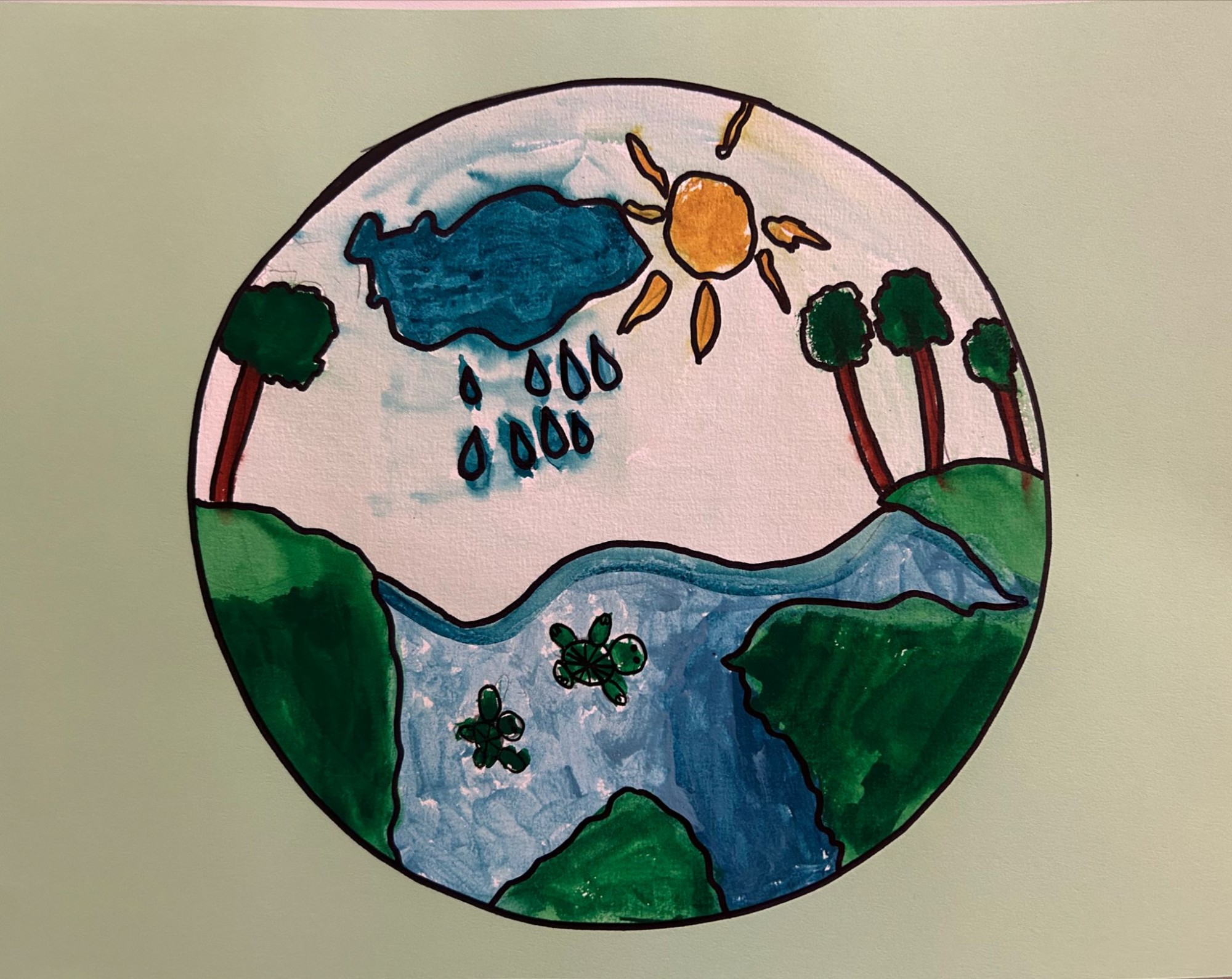 Bruņurupucīši ir laimīgi, ka var peldēties tīrā ūdenī. Akvarelis.