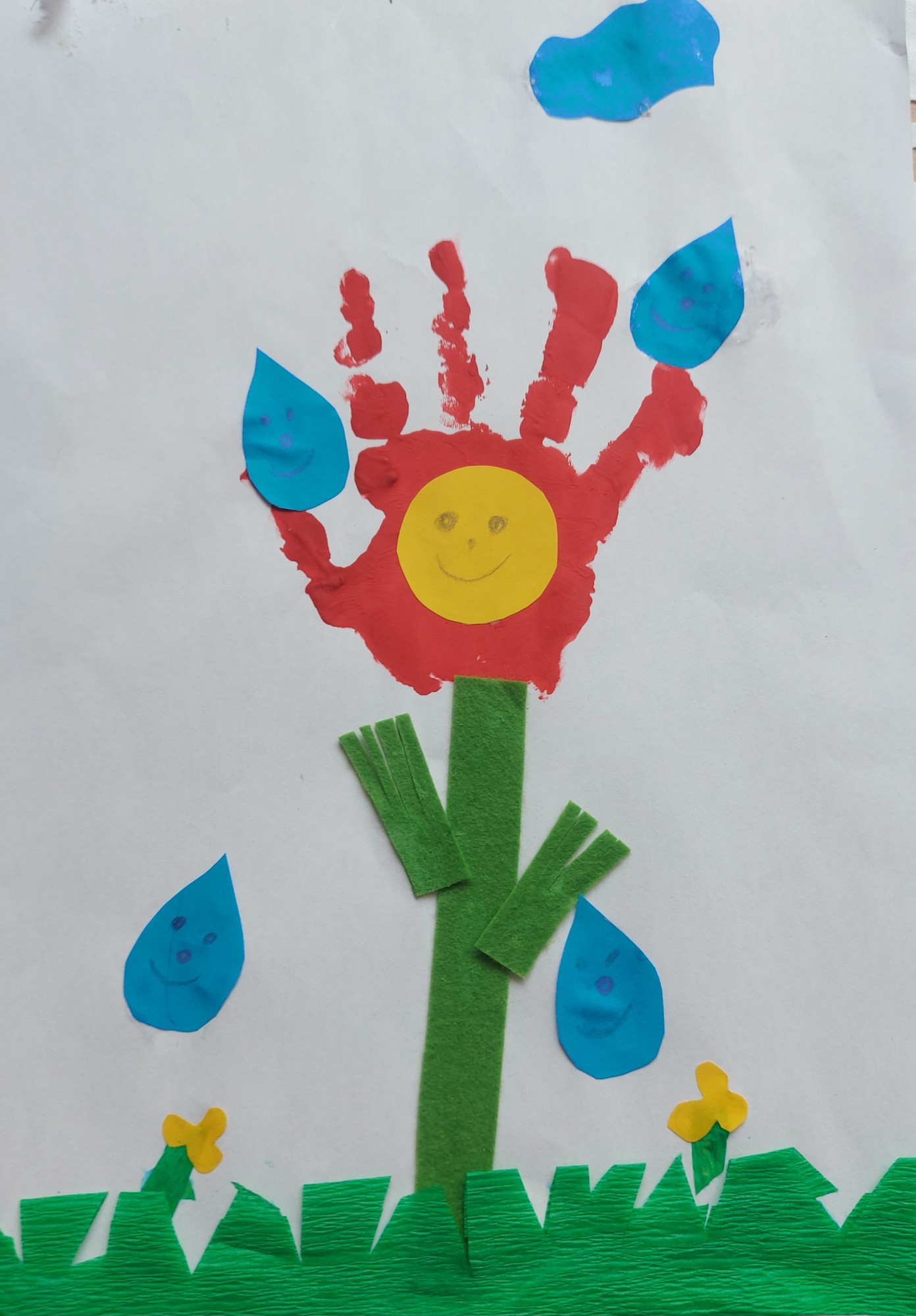 Puķe ir priecīga. Lietus pilītes priecīgas. Puķīte priecājas par lietutiņu.Ja būs lietus viss augs.