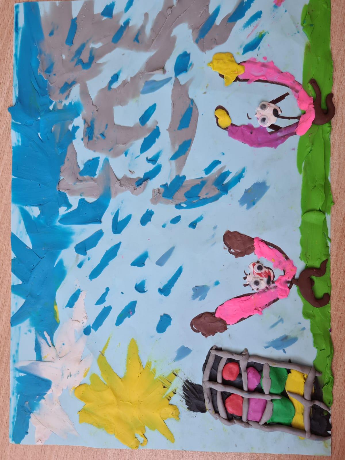 Līst lietus, bērni ārā priecājas un dejo, jo viņš līst.
