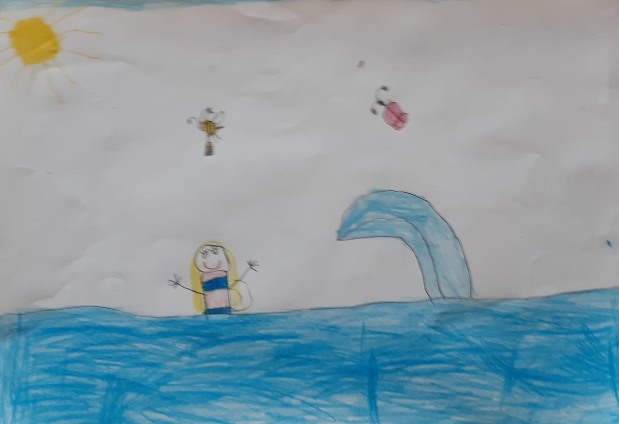 Es peldu jūrā. Man patīk lieli viļņi.