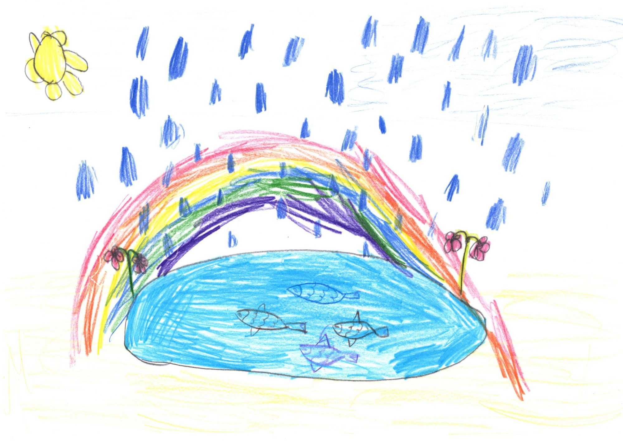 Attēlā tiek uzzīmētas dažādas dabas paradības. Lietus un