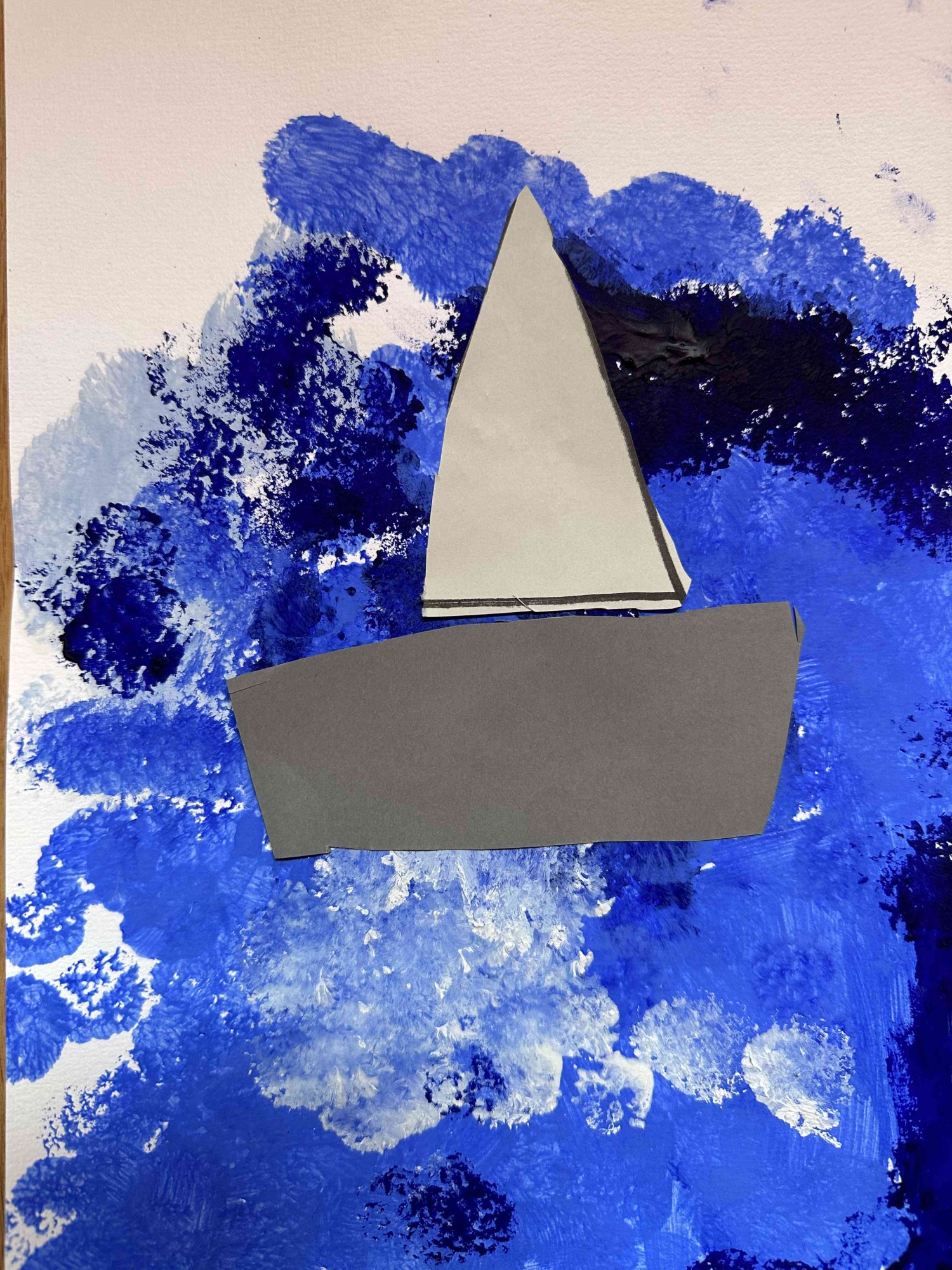 Ir zila, zila jūra un burulaiva šūpojas viļņos.