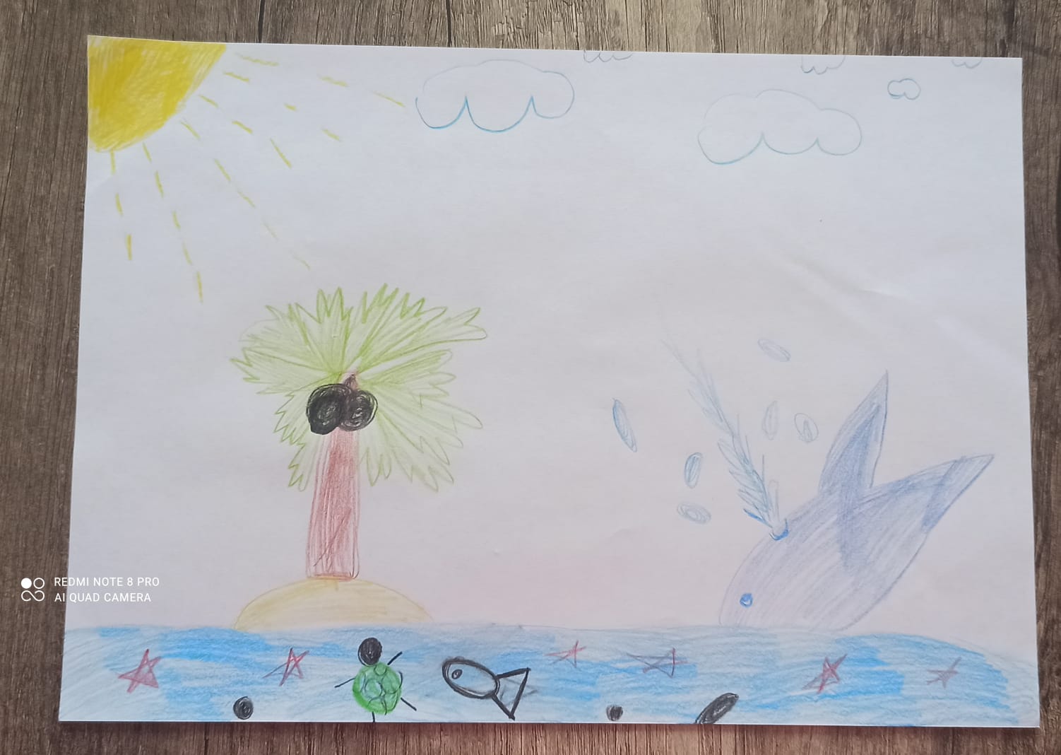Darbs veikt ar krāsainajiem zīmuļiem.