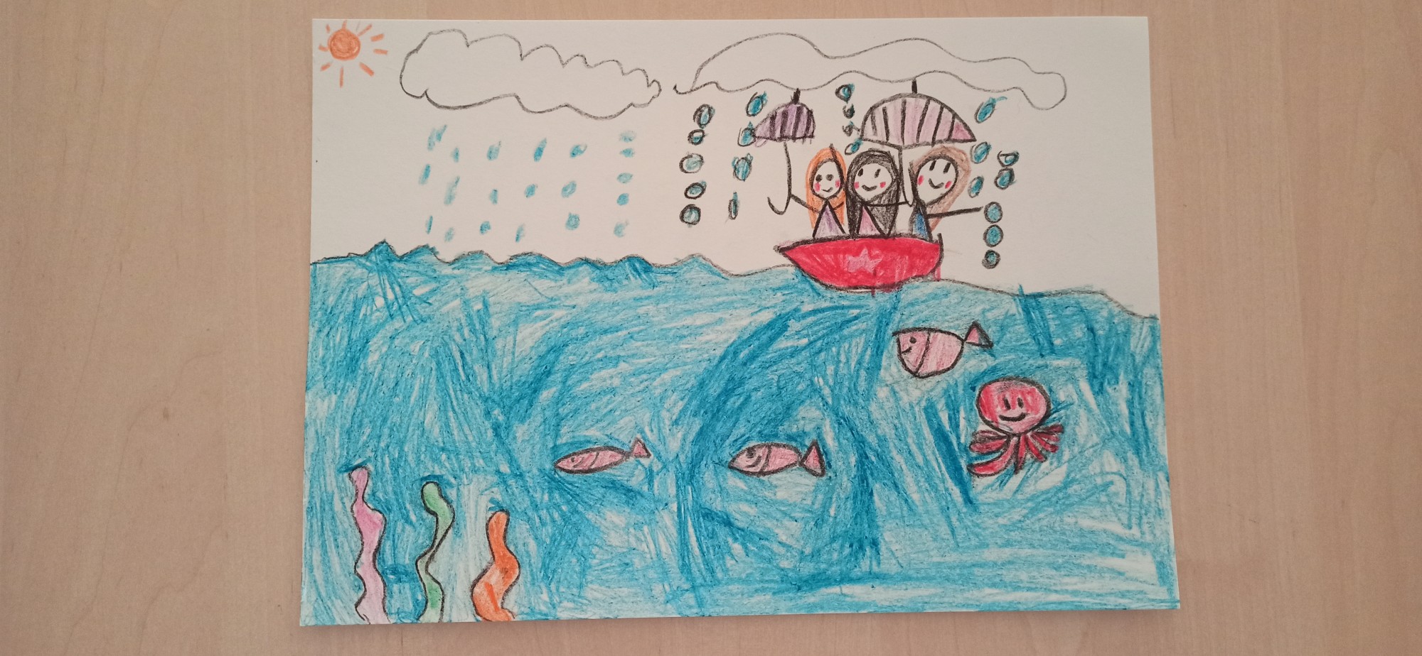Zīmējumā meitenes dodas iepazīt ūdeni, jo tas ir interesanti.