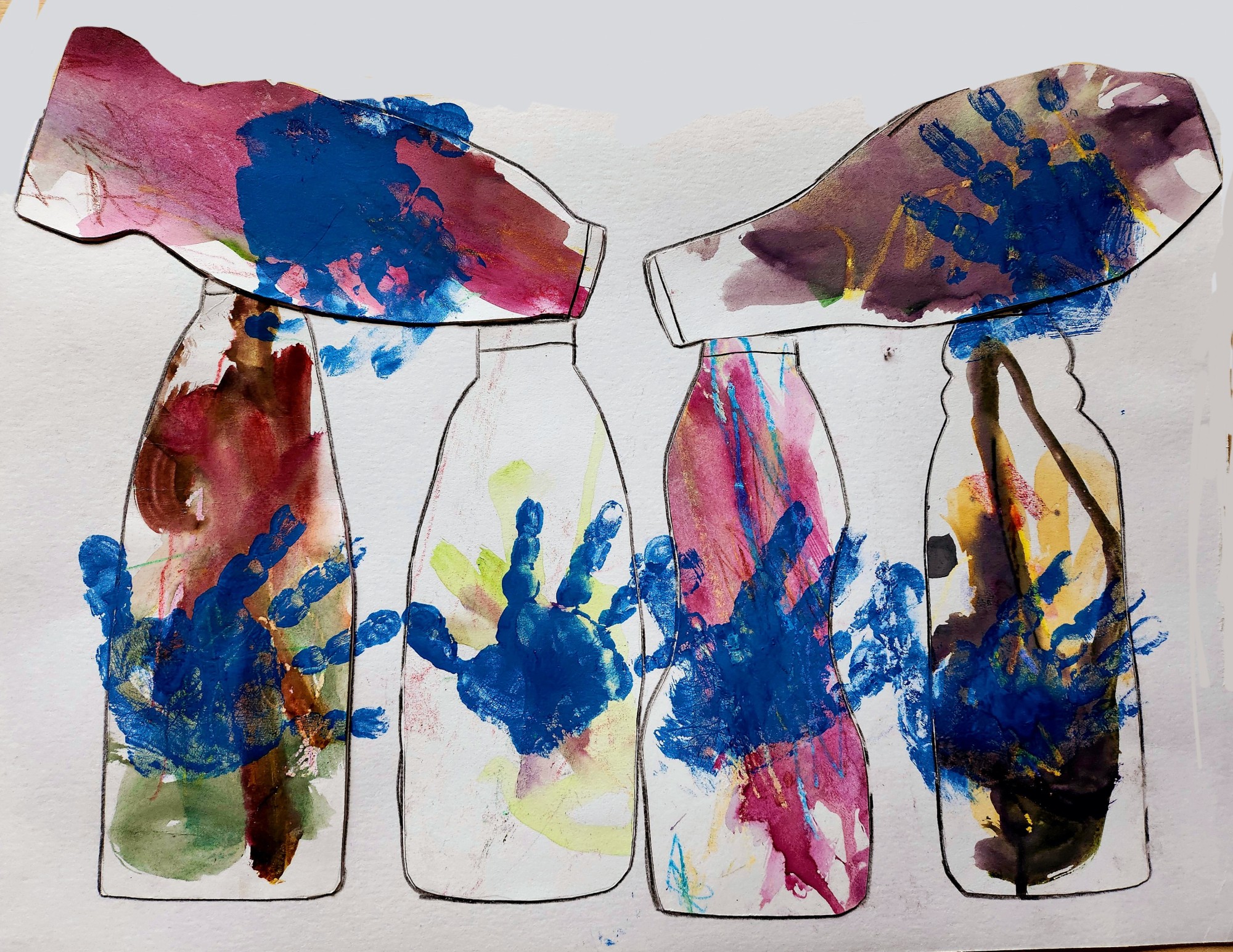 Zīmējumā attēlotā doma ir par to, ka bērniem grupiņā vienmēr ir pieejamas savas ūdens pudeles, kurās ir tīrs ūdens, lai veldzētu slāpes viena rokas stiepiena attālumā. Tādēļ uz izkrāsotajām pudelēm ir katra bērna plaukstas nospiedums, kas parāda, ka ūdens ir ļoti svarīgs mūsu organismam, lai mēs būtu enerģijas pilni! :)