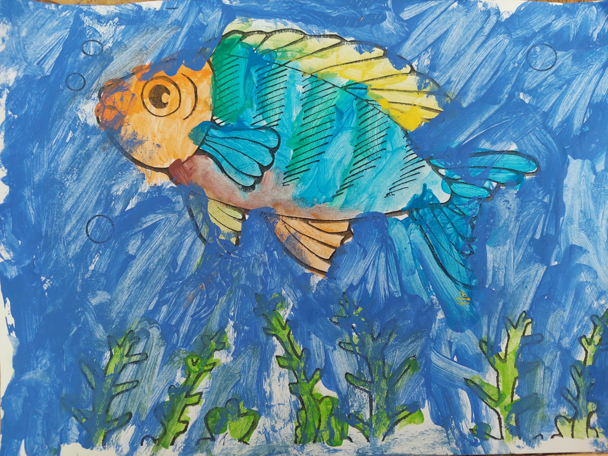 Ūdens pasaule Latvijā. Skolotājas kopā ar bērniem pārrunāja par Latvijā mītošajiem dzīvniekiem, kuriem TĪRS ūdens ir nepieciešams kā dzīves vieta, vai kā barības gūšanas vieta. Bērni dažādās tehnikās attēloja šo TĪRO ūdens pasauli.