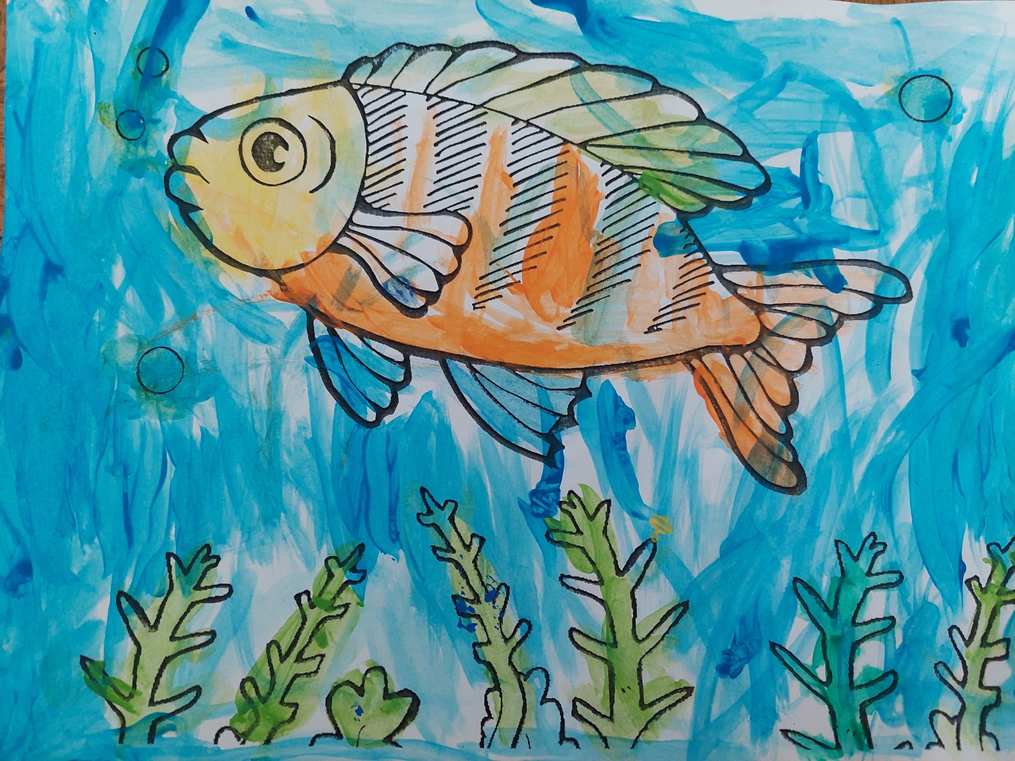 Ūdens pasaule Latvijā. Skolotājas kopā ar bērniem pārrunāja par Latvijā mītošajiem dzīvniekiem, kuriem TĪRS ūdens ir nepieciešams kā dzīves vieta, vai kā barības gūšanas vieta. Bērni dažādās tehnikās attēloja šo TĪRO ūdens pasauli.