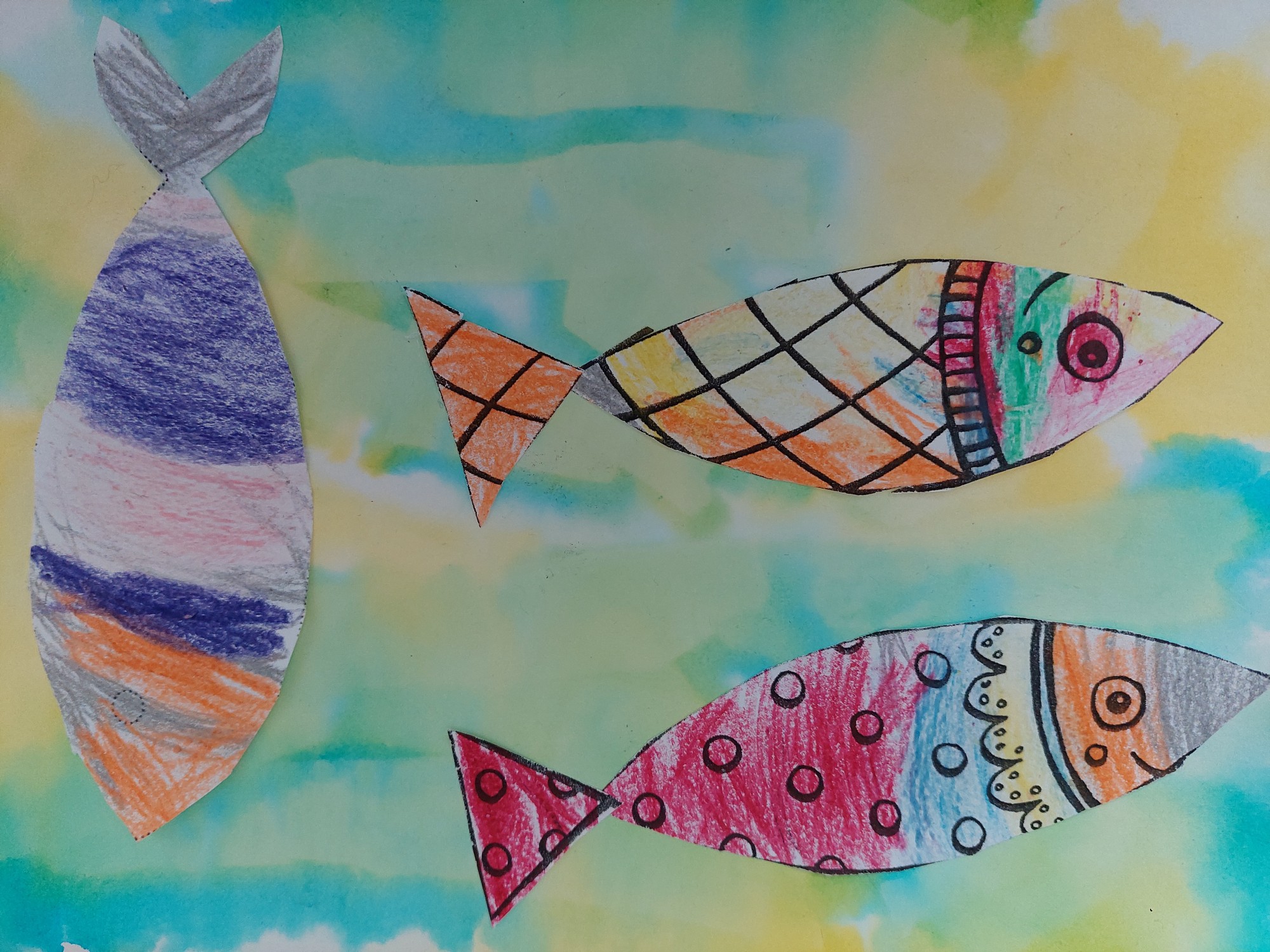 Ūdens pasaule Latvijā. Skolotājas kopā ar bērniem pārrunāja par Latvijā mītošajiem dzīvniekiem, kuriem TĪRS ūdens ir nepieciešams kā dzīves vieta, vai kā barības gūšanas vieta. Bērni dažādās tehnikās attēloja šo TĪRO ūdens pasauli.