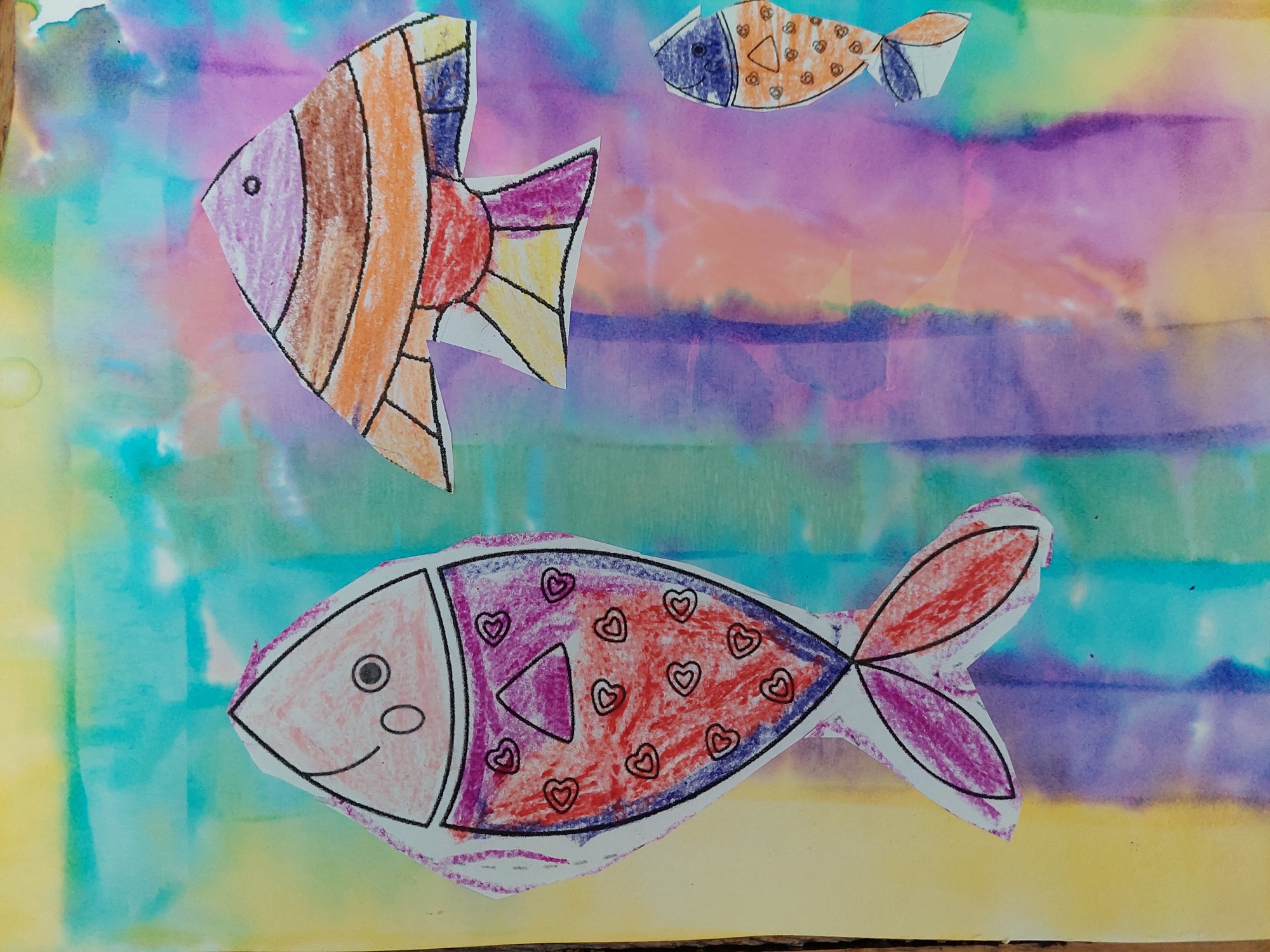 Ūdens pasaule Latvijā. Skolotājas kopā ar bērniem pārrunāja par Latvijā mītošajiem dzīvniekiem, kuriem TĪRS ūdens ir nepieciešams kā dzīves vieta, vai kā barības gūšanas vieta. Bērni dažādās tehnikās attēloja šo TĪRO ūdens pasauli.
