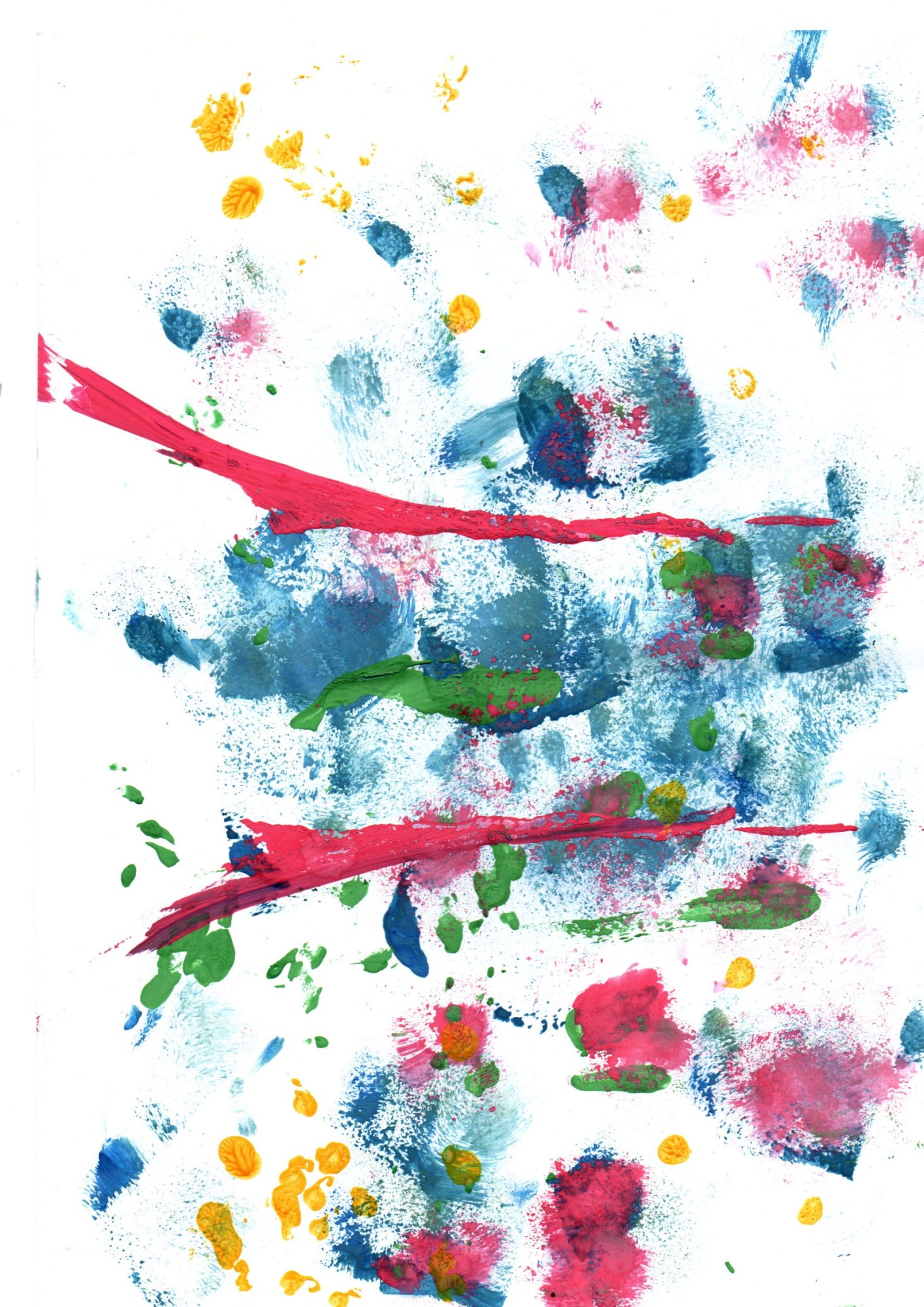 Guaša krāsa zīmējumā uzkrāta ar švammītes, kociņa un diedziņa palīdzību. Sākumā zīmēts vienā lapas pusē, tad to pārlokot uz pusi un viegli piespiežot ar plaukstiņu, tas atstāja zīmējuma nospiedumu otrā lapas pussē.