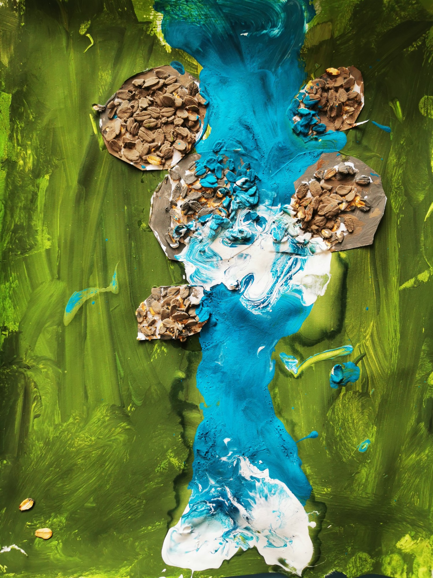 Dzilnīšu mēneša tēma- Ūdens. Sākām ar to, ka apskatījām, kas dzīvo ūdenī, kādā krāsā tas ir. Ūdeni svērām, krāsojām, saldējām, garšojām. Mūsu dārziņš atrodas skaistā vietā Siguldā. Dažādas ūdenstilpnes mums ir apskatāmas jebkurā laikā un dažādākajos platumos un garumos. Pastaigas laikā atradām un pievērsām uzmanību mūsu mazajam strautiņam. Visi kopīgi apklusām un klausījāmies ūdens tecēšanā. Aizvērām acis un iedomājāmies, kā būtu, ja tagad jau būtu vasara. Bērni uzdeva jautājumu, vai šo ūdeni drīkst dzert. Visu izrunājām, ka labāk dzert ir zināmu ūdeni, kurš ir pārbaudīts. Vasaras ilūziju un vasaras siltumu gaidoši, bērniem tapa zīmējums, ,,Meža strautiņš." Kad darbiņš tapa, mēs ilgu laiku skatoties uz šo zīmējumu, iedomājāmies, ka strautiņā mērcējam kājas un gaidām vasaras siltumu. Tāpat arī atradām ticējumus par strauta ūdens spēku, izpildīsim šos ticējumus siltā pavasara dienā, kad dosimies kopīgā pārgājienā ar vecākiem.