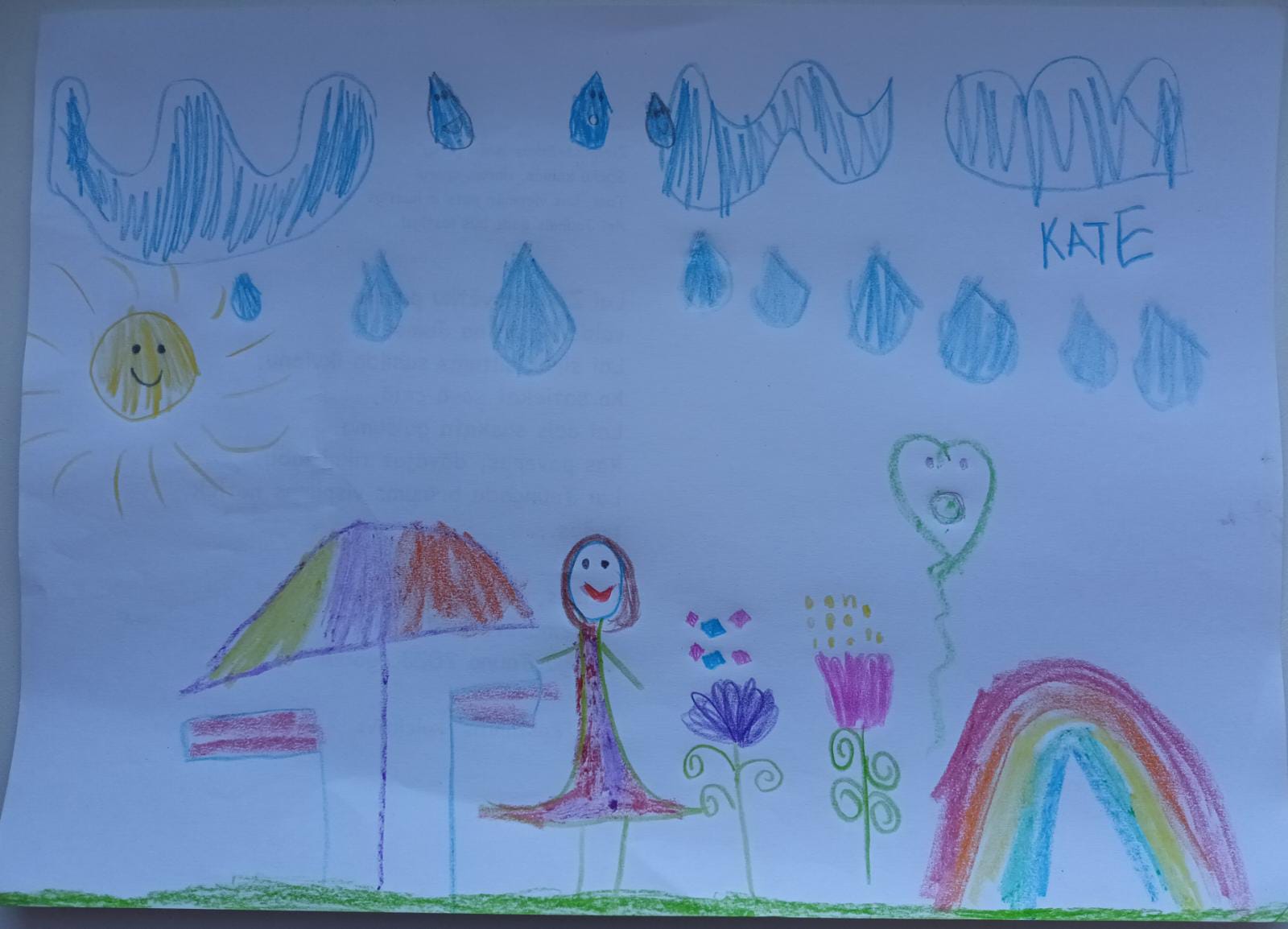 Meitene,kurai patika lietus un varavīksne,kura radās pēc lietus!