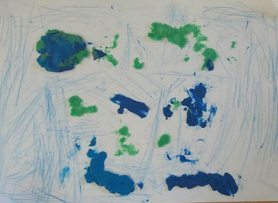 Darbā attēlots kosmoss, kurā ir zeme un daudz elektrības. Uz zemes ir daudz ūdens.