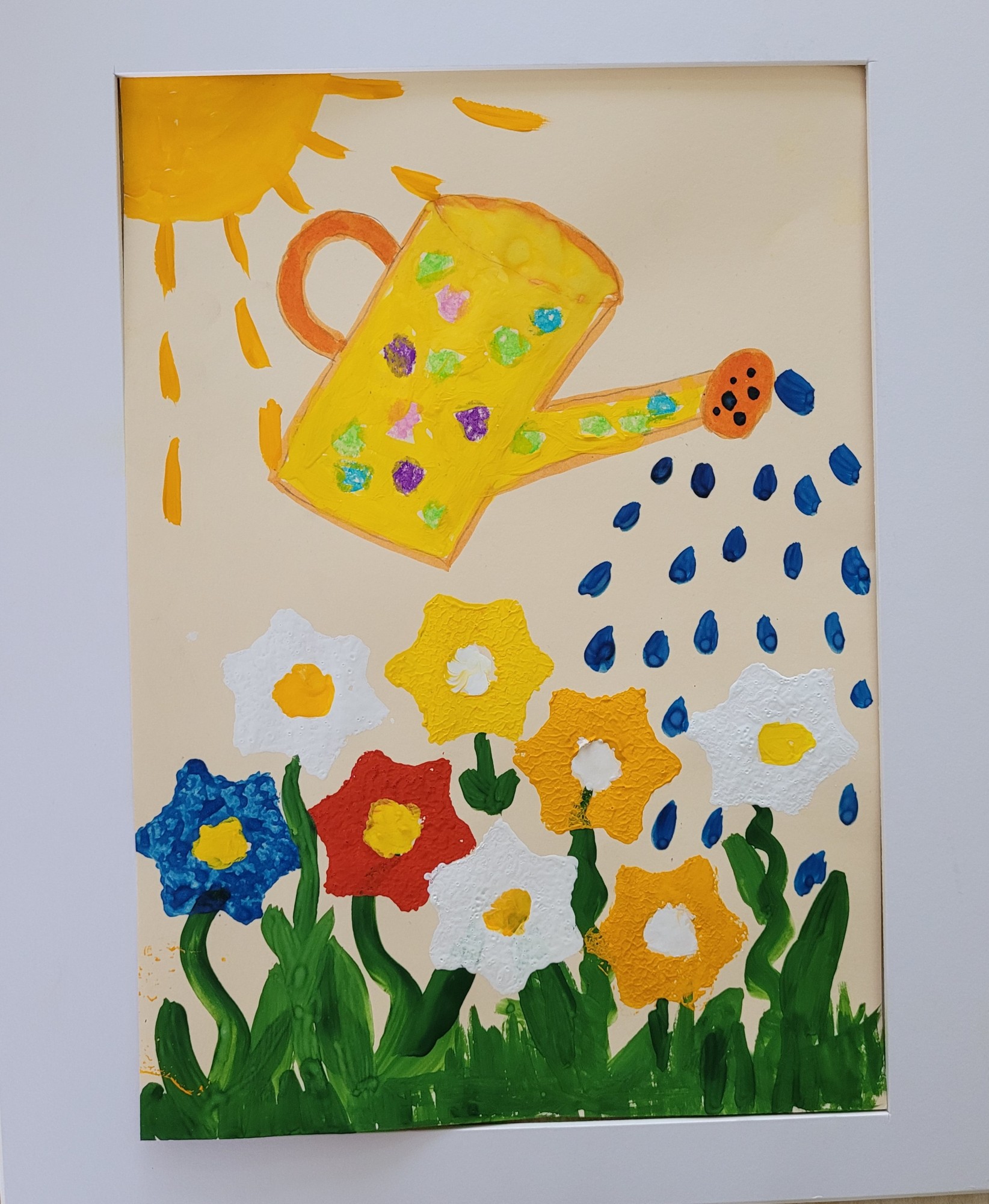 Netradicionālā tehnika- ziedu nospiedumu izmantošana, vaska krītiņi un guaša krāsas.