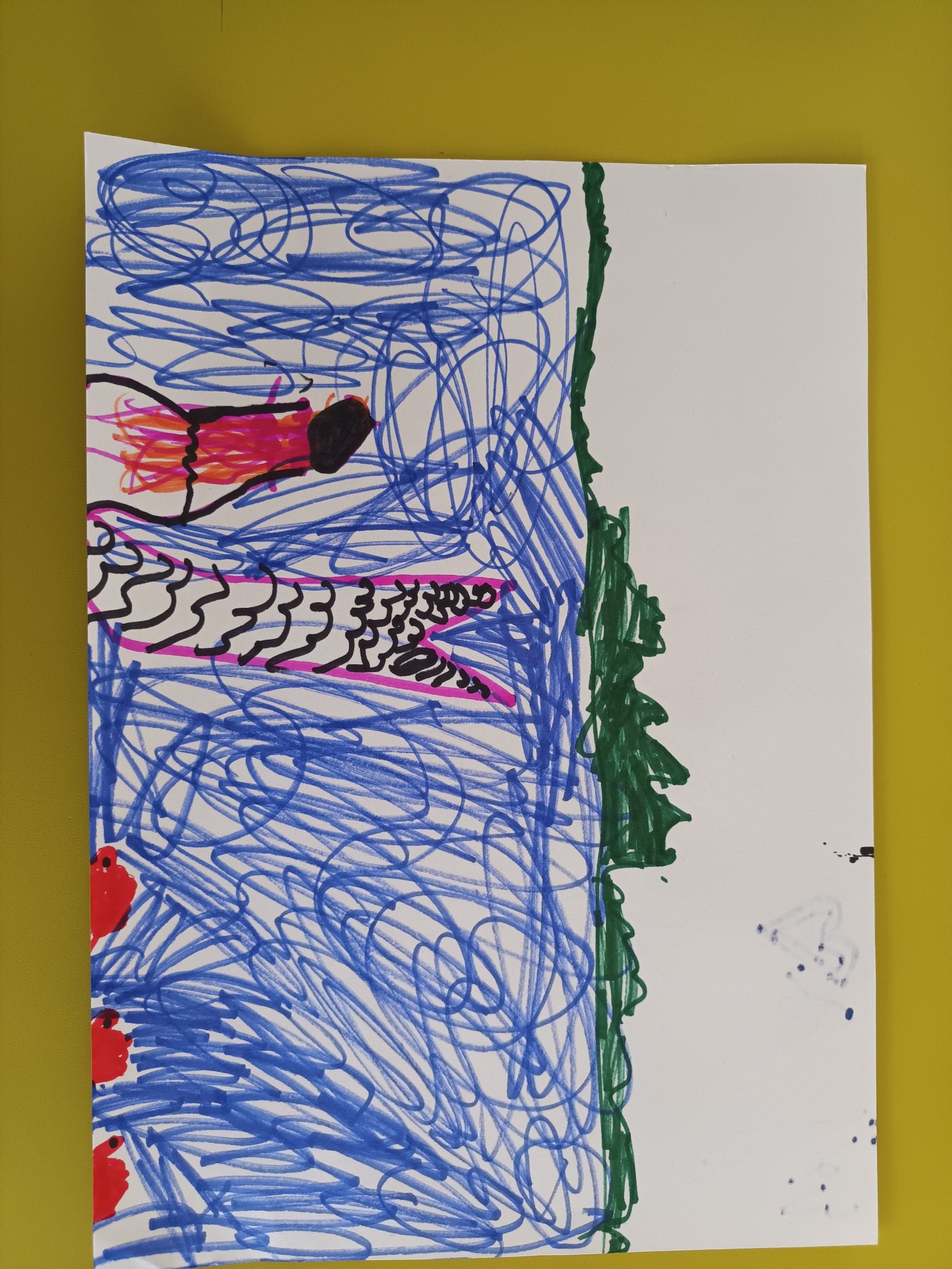 Ūdens nāriņa skatās uz augšu. Sarkanie ir ūdens dzīvnieki. Kokiem ir vajadzīgs ūdens.