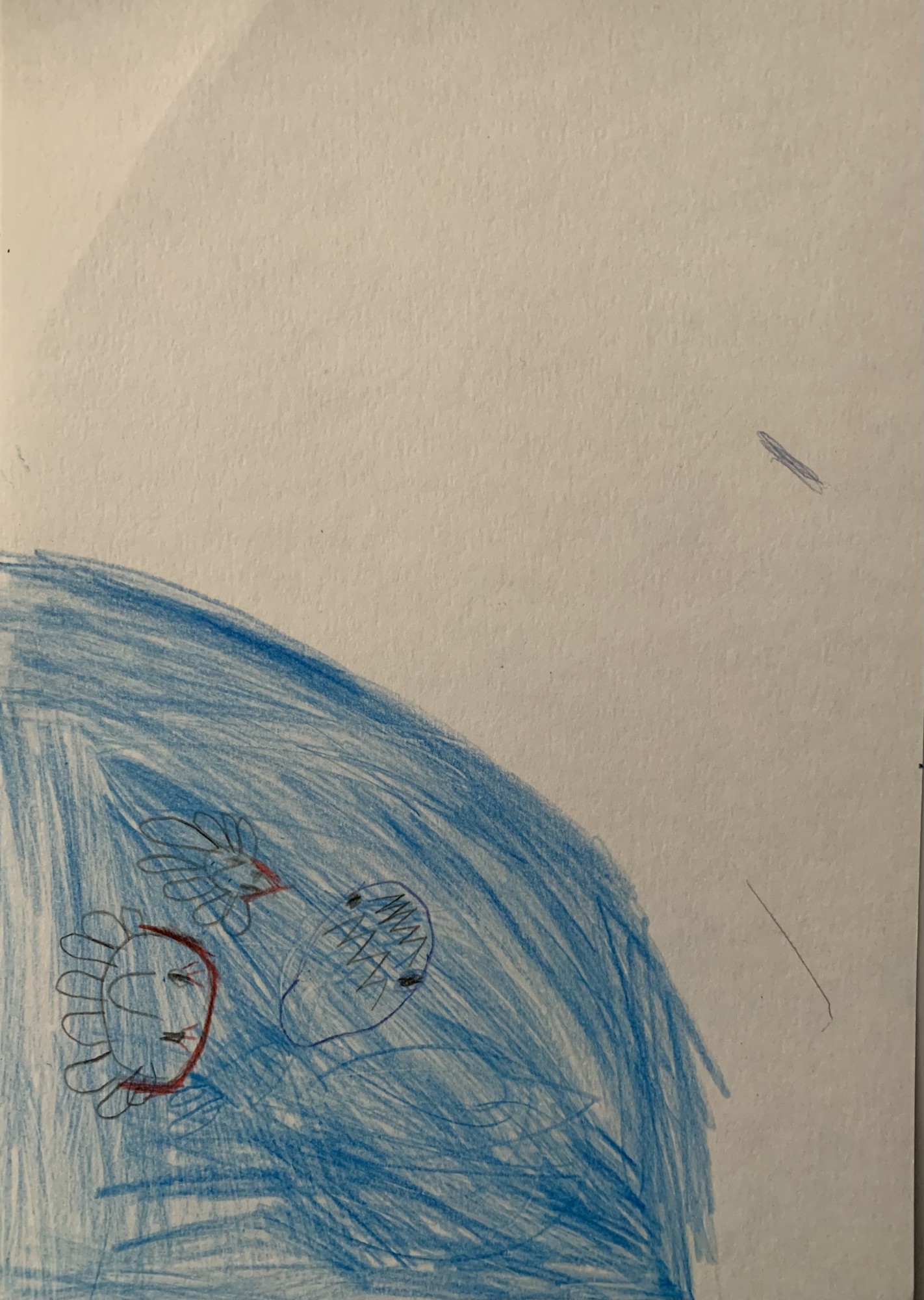 Astoņkāju ģimene peld ūdenskritumā pabarot haizivi.