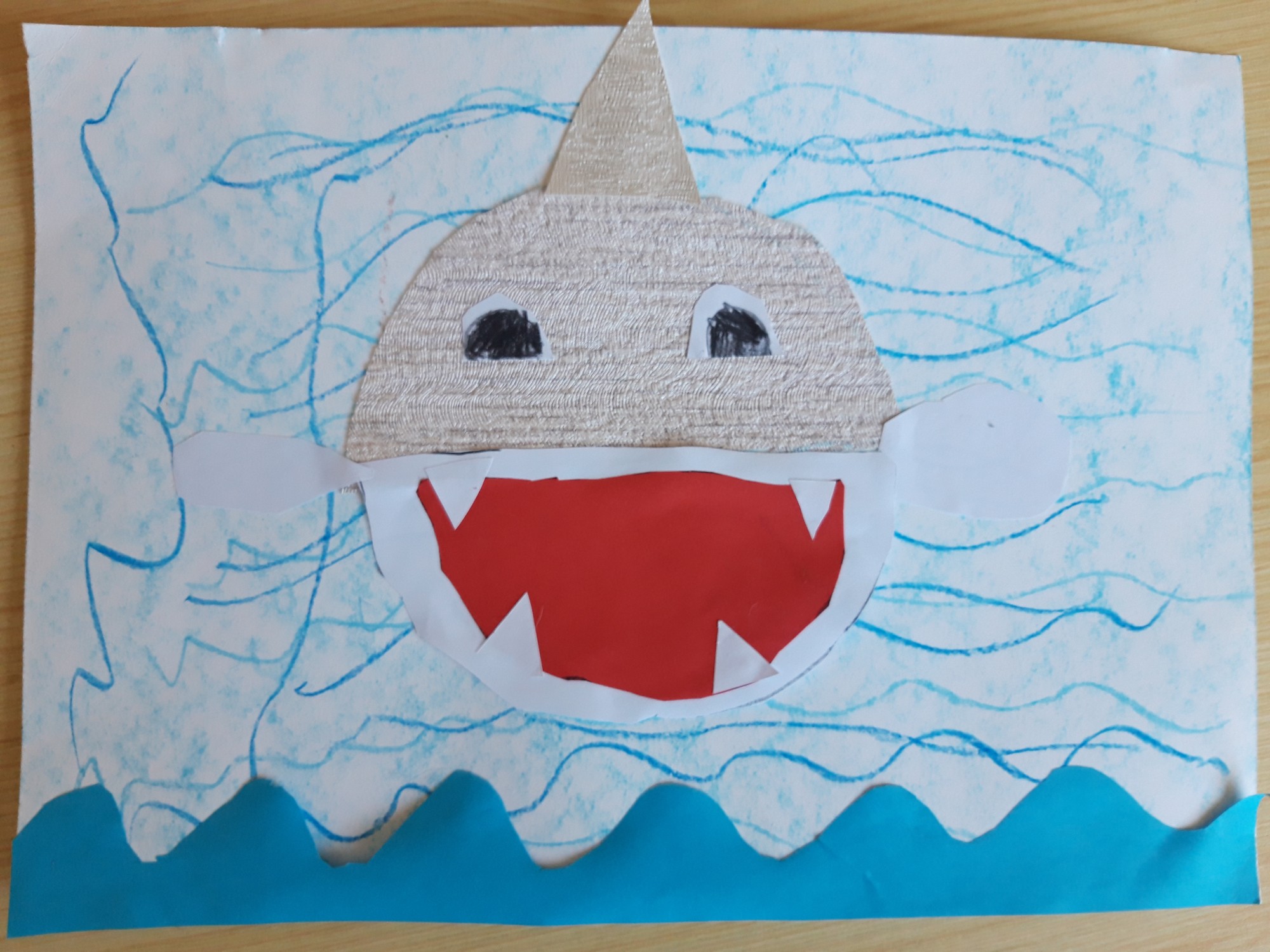 Darbs tapis, apvelkot šablonus, griežot ar šķērēm, aplicējot. Fons - krītiņi.