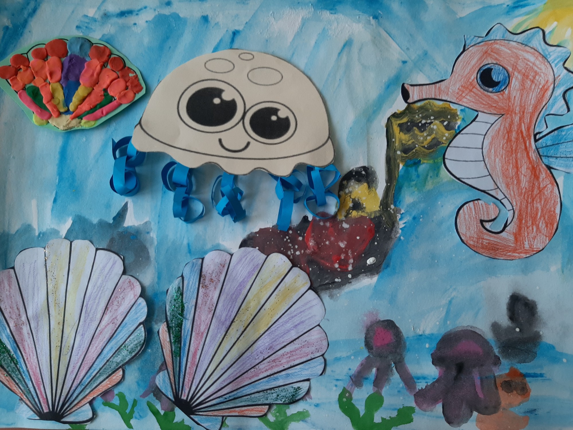 Zīmējumā izmantotās tehnikas- zīmēšana ar guašu, zīmuļkrāsām, plastilīna veidošana un specefektu pielietošana.