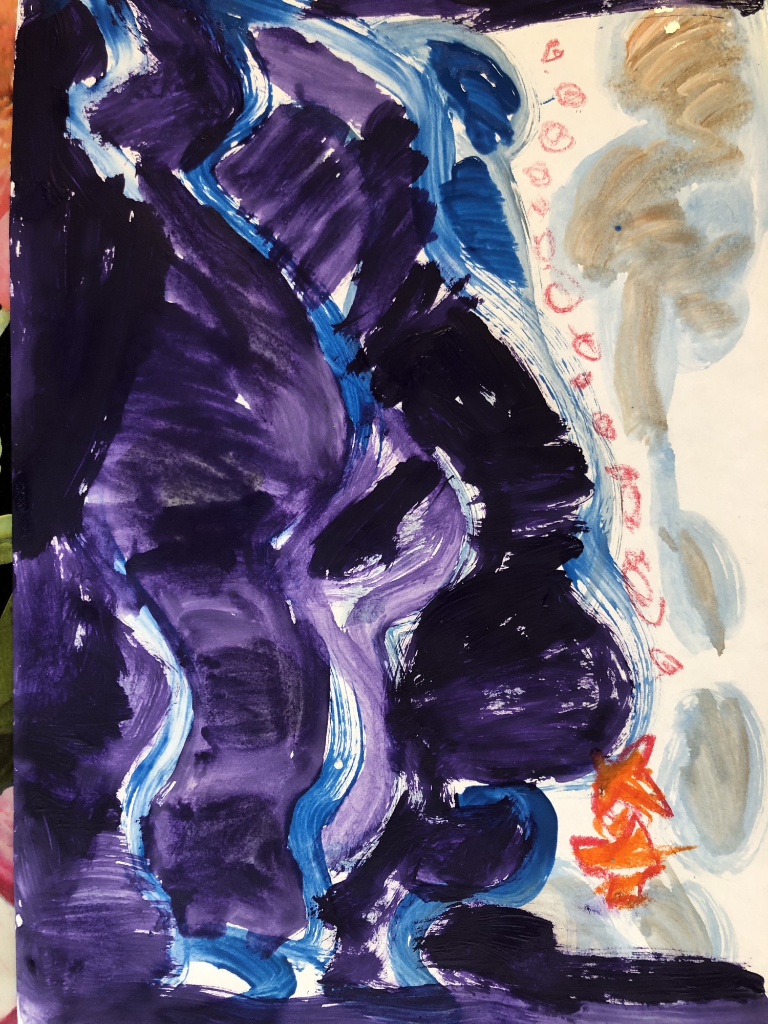 Gaiši mākoņi, jūraszvaigznes un jūra viļņos