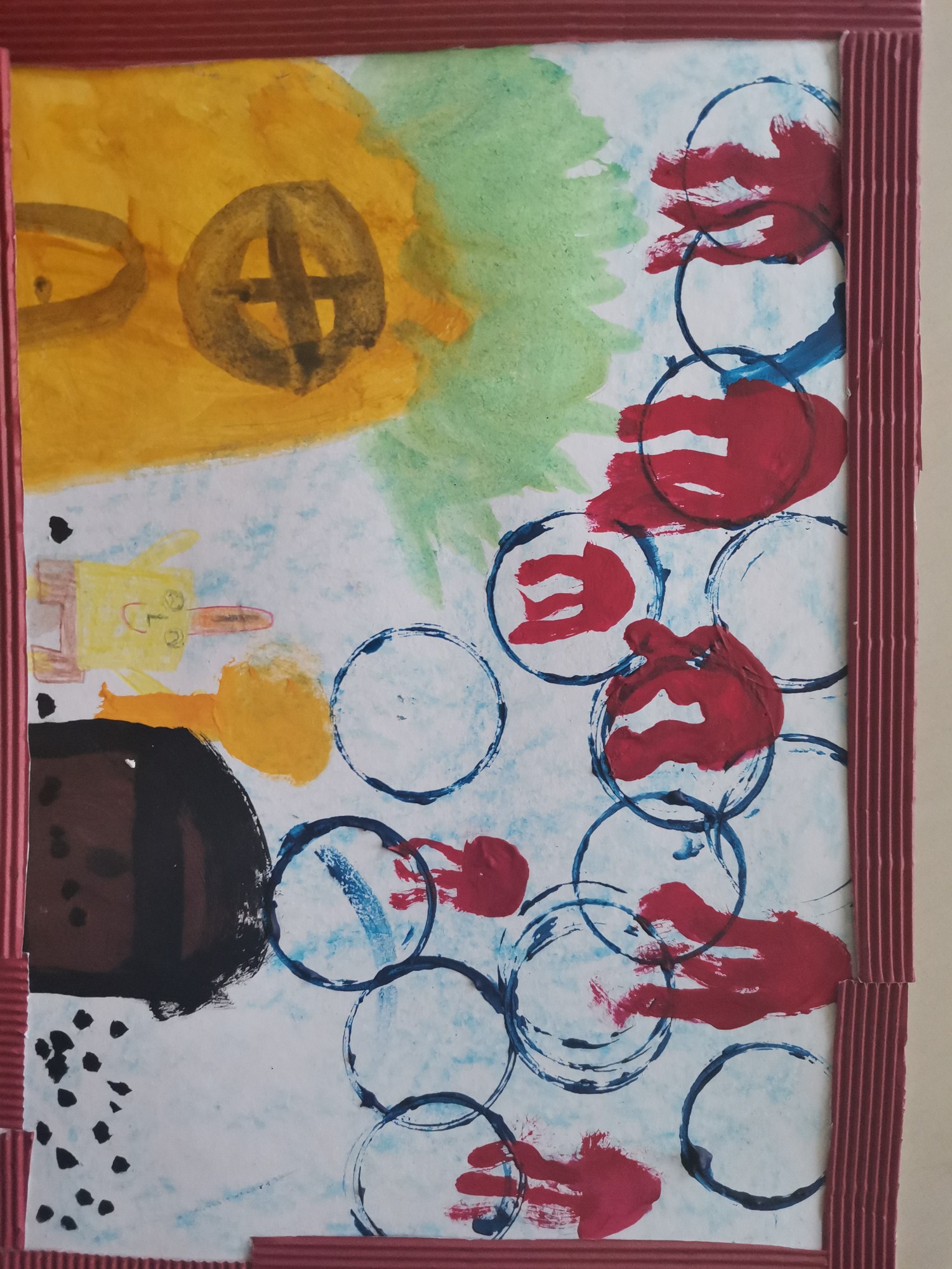 Krītiņi, kartons, ūdenskrāsas, nospiedumu tehnika