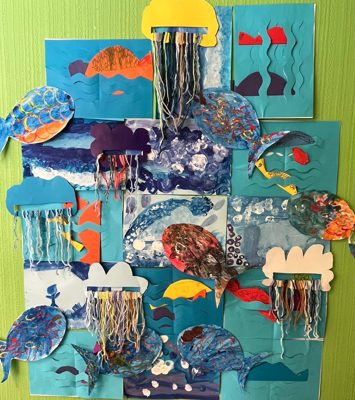 "Taurenīšu" grupas bērni, vecumā no 4-6 gadiem ir izveidojuši kompozīciju, kurā var apskatīt ūdeni mūsu pasaulē- gan lielākos un mazākos viļņos, gan dažnedažādos mākoņos, gan pie mūsu krāsainajām zivīm un vēl un vēl...