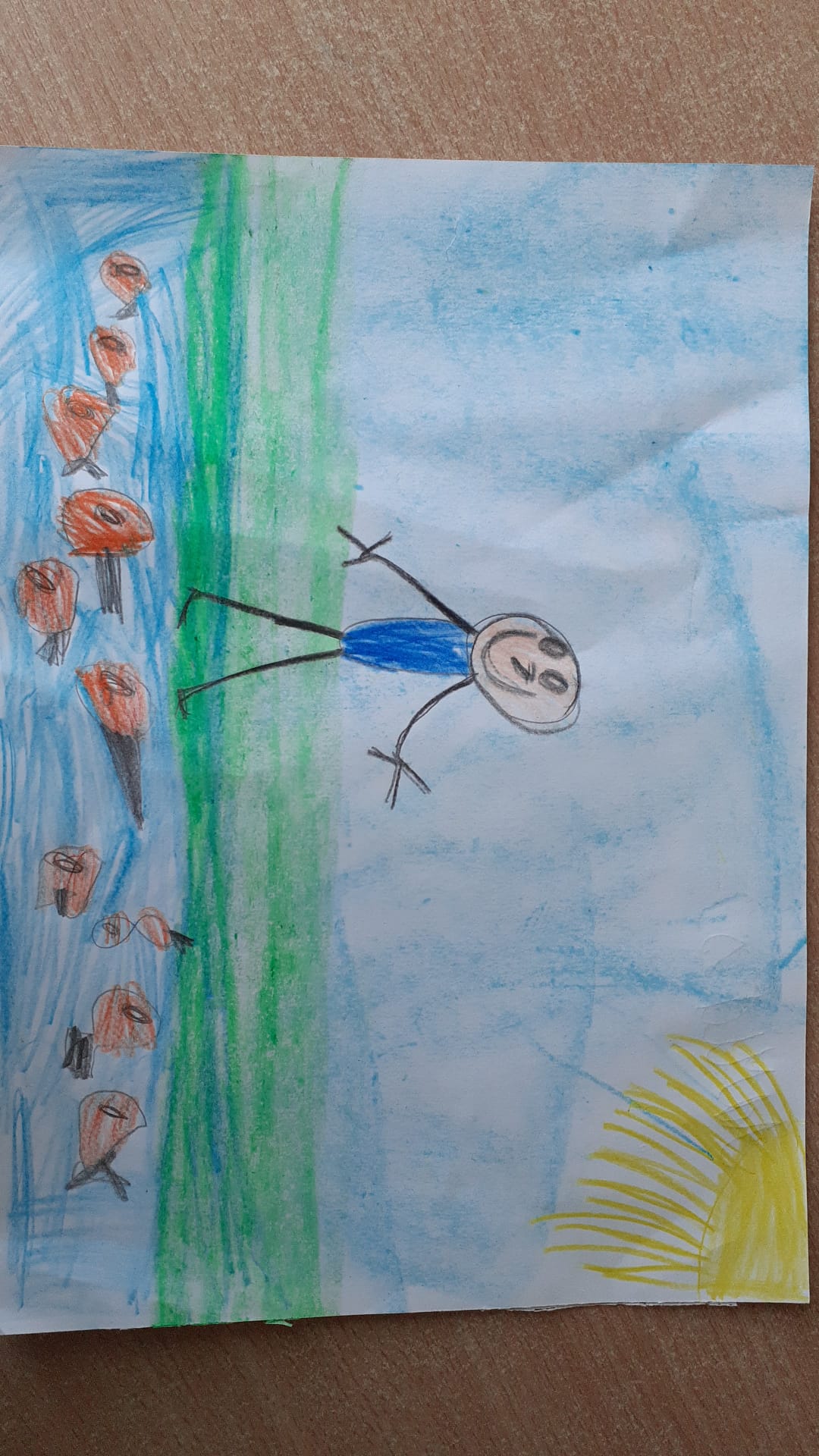 Darbs veikt ar vaska krītiņiem un zīmuļiem.