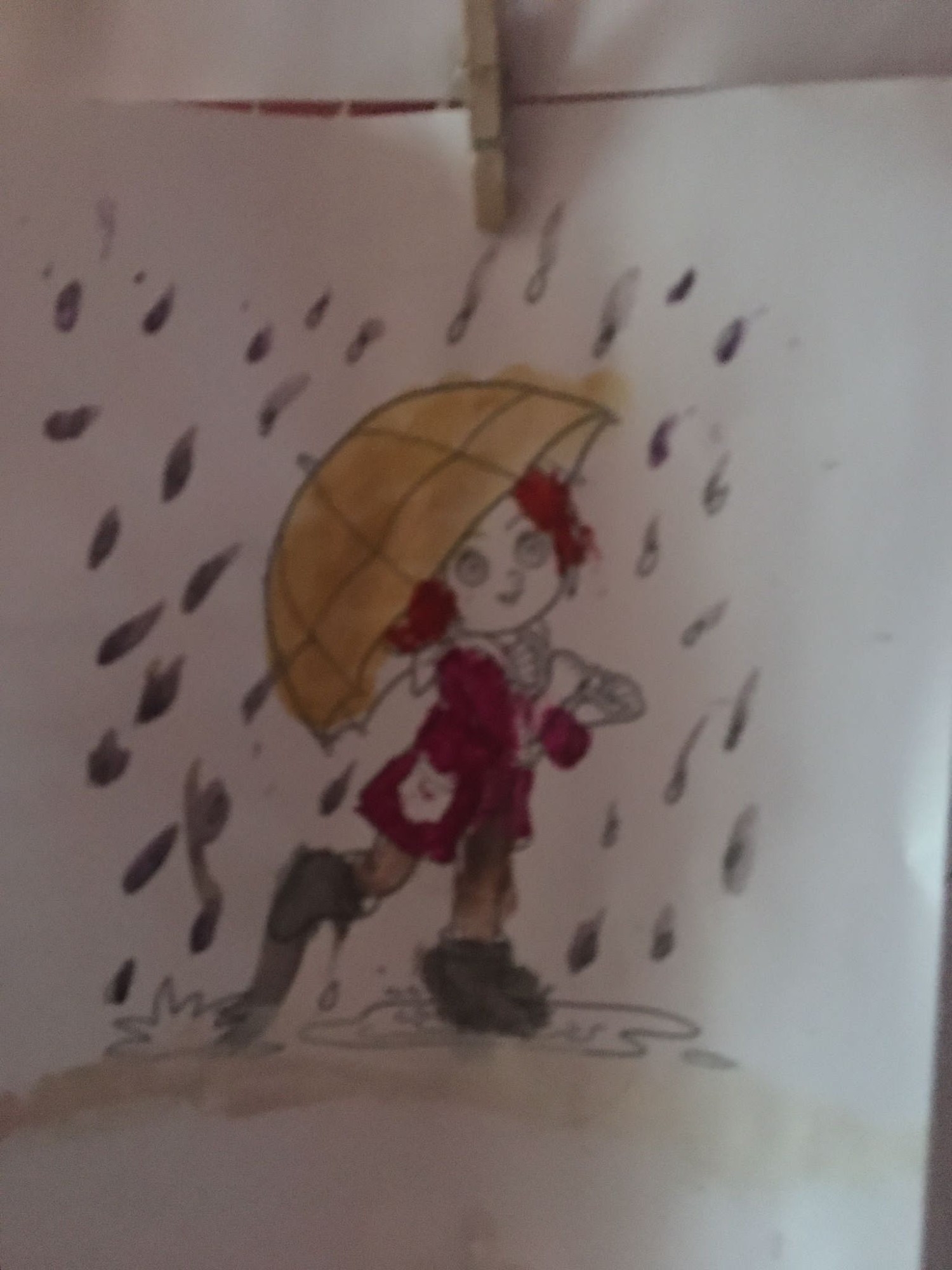 Ar akvareļu krāsu tehniku krāso pavasara lietutiņu