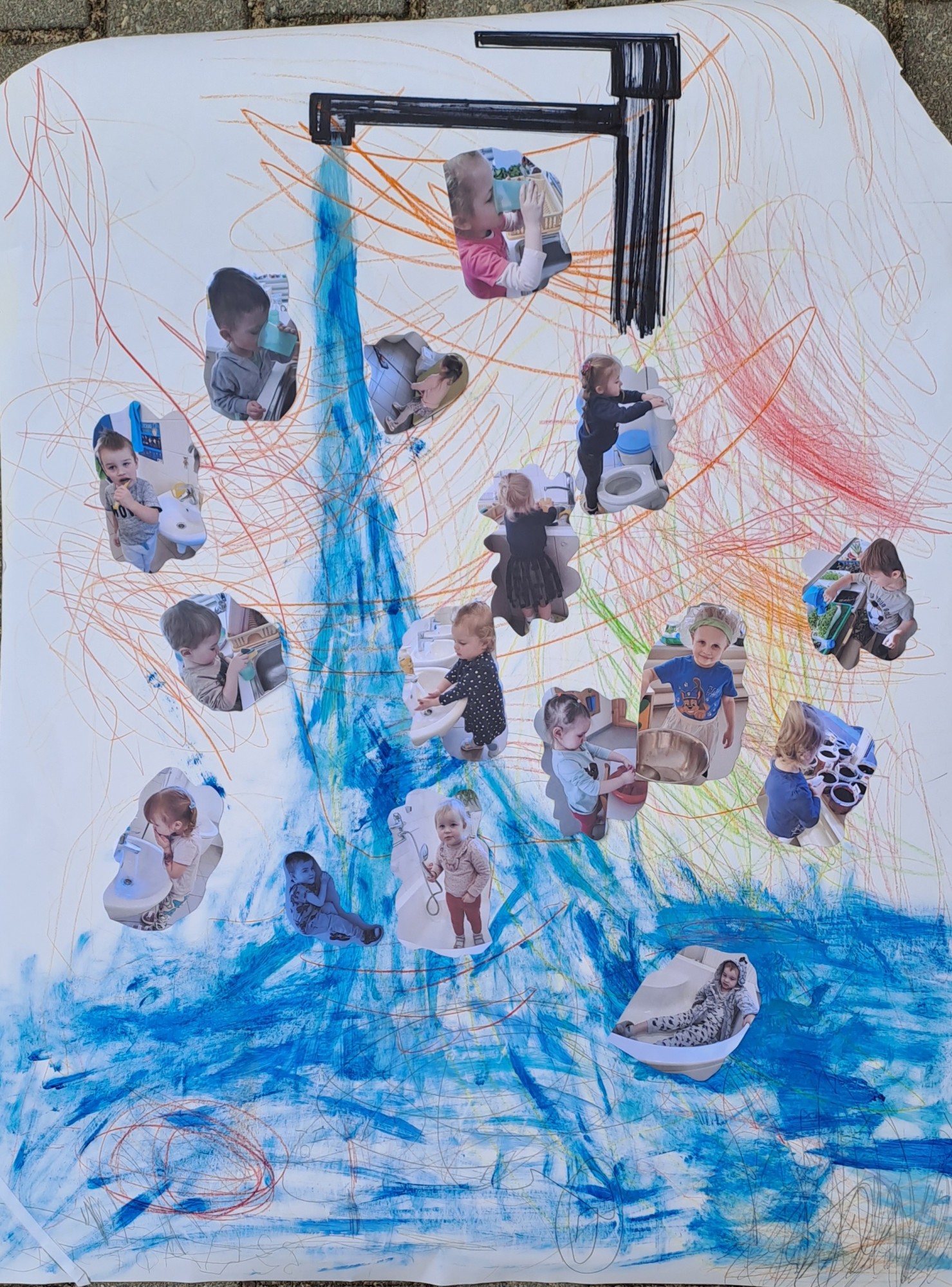 Mazie "Lāčuki" savā zīmējumā attēlo ūdeni un ūdens krānu - vietu no kurienes var dabūt ūdeni. Tā kā mazie "Lāčuki'' vēl tikai mācās zīmet, tad to kā izmanto ūdeni parādījām fotogrāfijās, bet fonu zīmējumam un pašu svarīgāko - ūdeni - zīmēja paši.