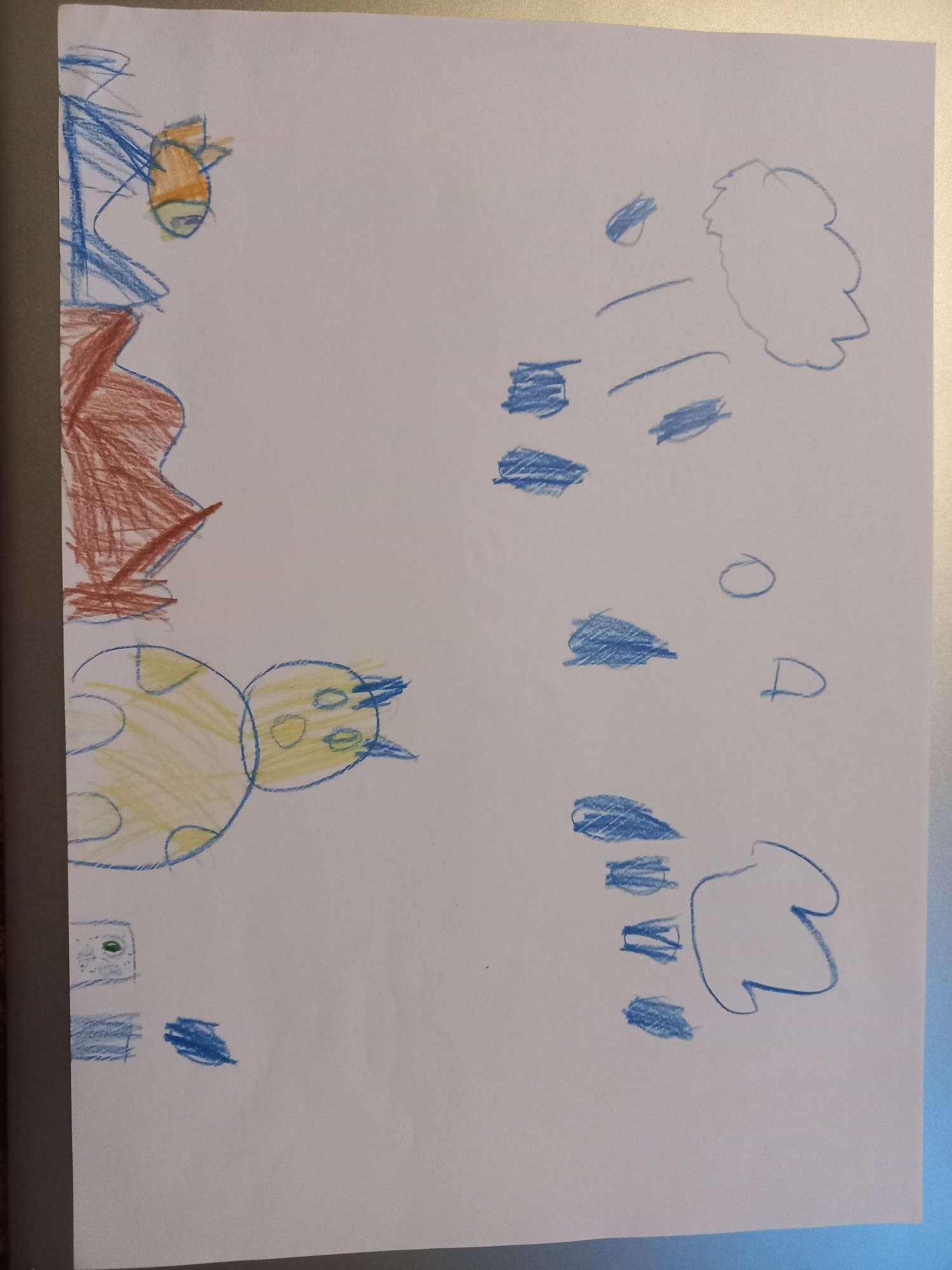 Lietus līst uz zemes. Tur dzīvo zelta zivtiņa. Kaķim arī vajag ūdeni.