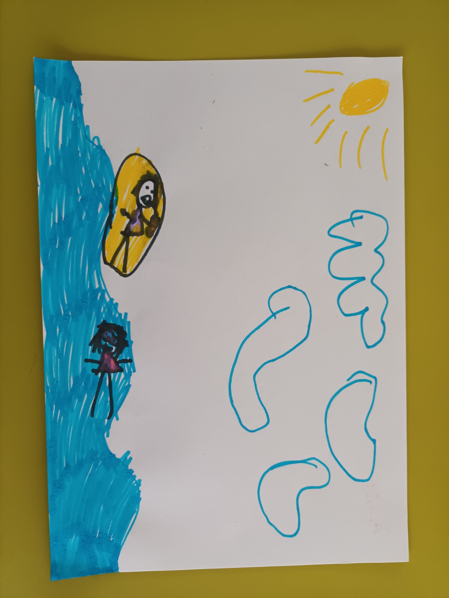 Atpūšos pie ūdens. Sauļojas un guļu uz piepūšamā matrača. Mana draudzene peldas. Ūdens ir silts.
